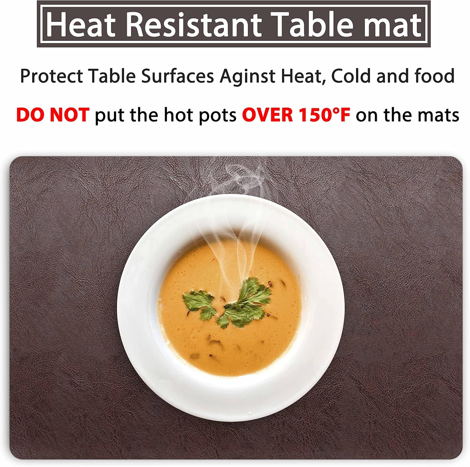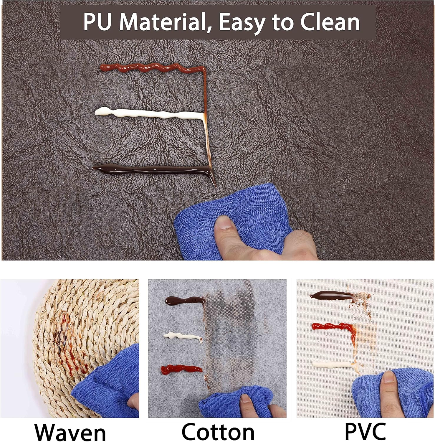 Set of 6 Faux Leather Placemats, PU Table Mats, Waterproof, Stain Resistant, Heat Resistant, Non-Slip Easy to Clean for Kitchen Dining Table,Conference Table F Dark Brown
