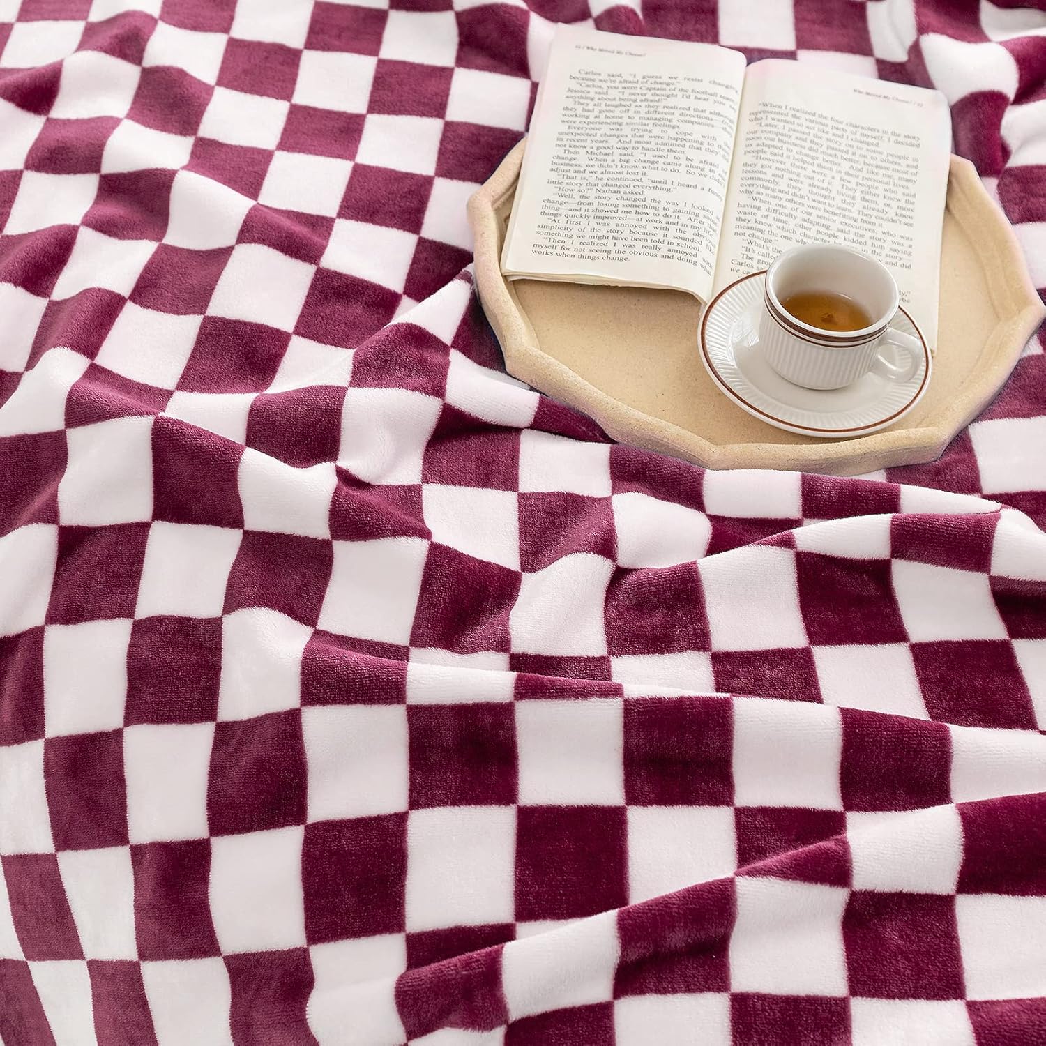 LOMAO Throw Blankets Flannel Blanket with Checkerboard Grid Pattern Soft Throw Blanket for Couch, Bed, Sofa Luxurious Warm and Cozy for All Seasons (Burgundy, 50"x60")