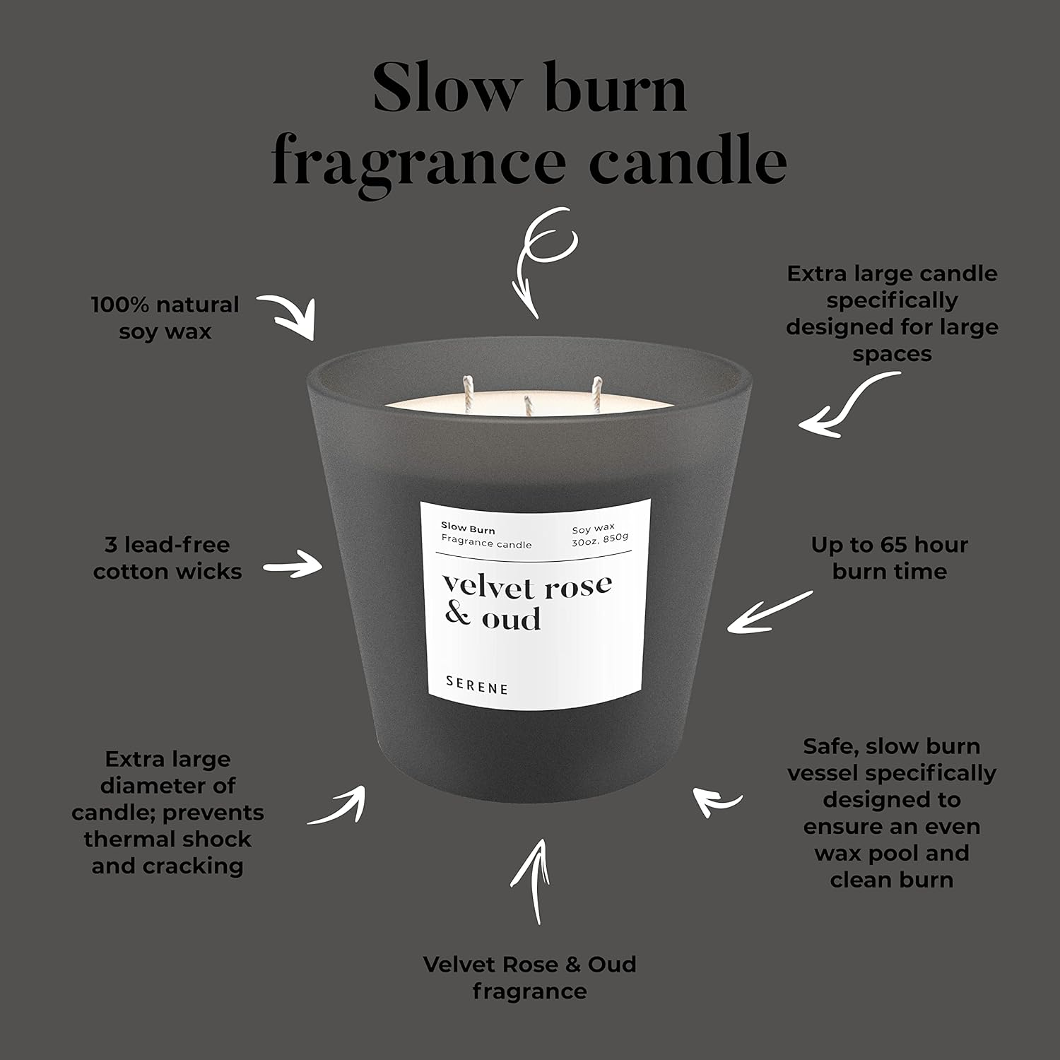 Hidden Label Large Scented Candle, Velvet Rose & Oud, 30oz 3 Wick Huge Candle, Serene Collection Slow Burn Natural Soy Candles for Home Scented