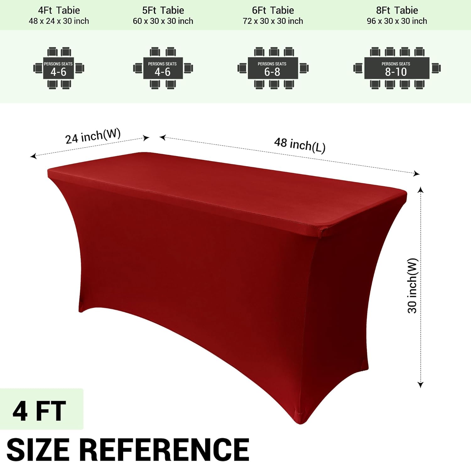 Obstal Spandex Table Cover 4ft Fitted Tablecloth Rectangular - Stretch Rectangle Folding Table Cloth for Birthday Party Wedding Banquet, Dark Red, 48L x 24W Inch