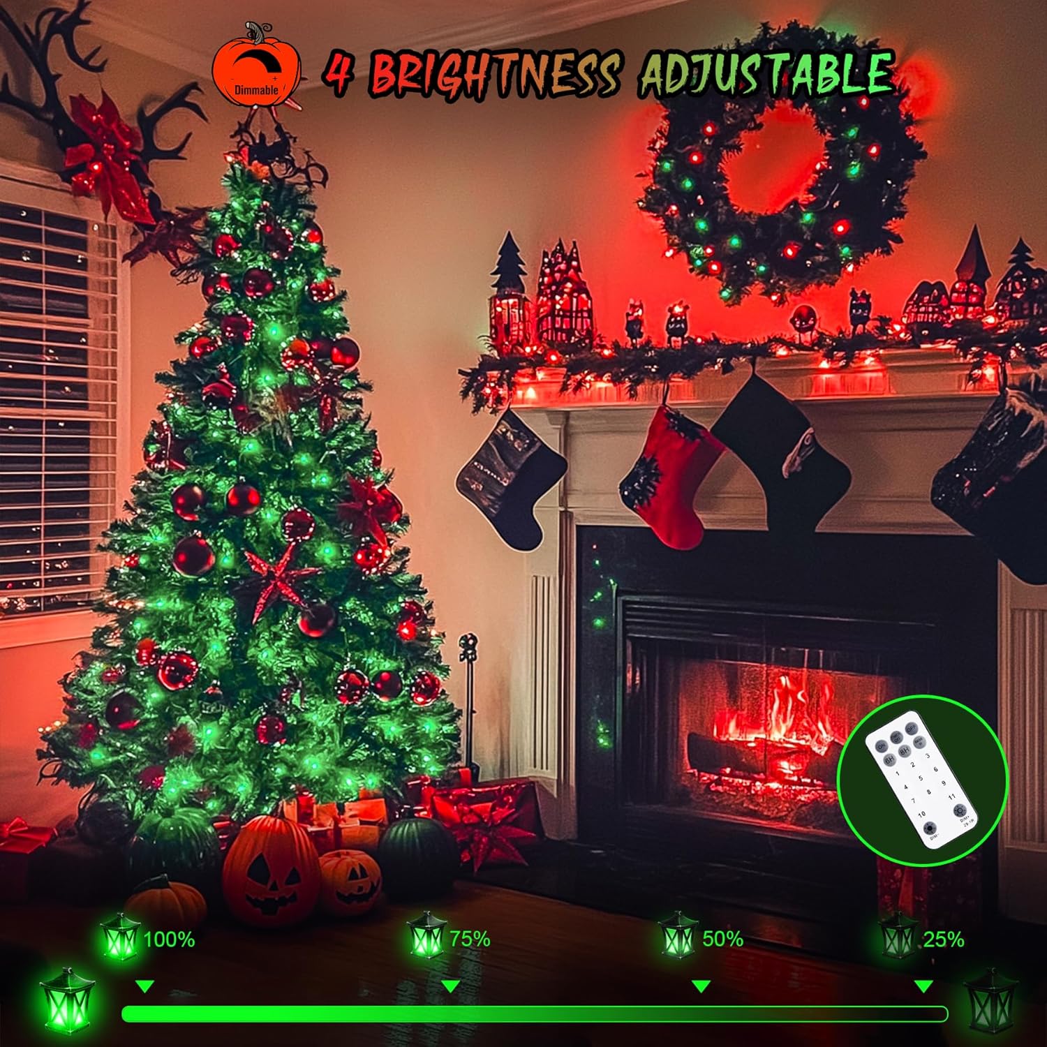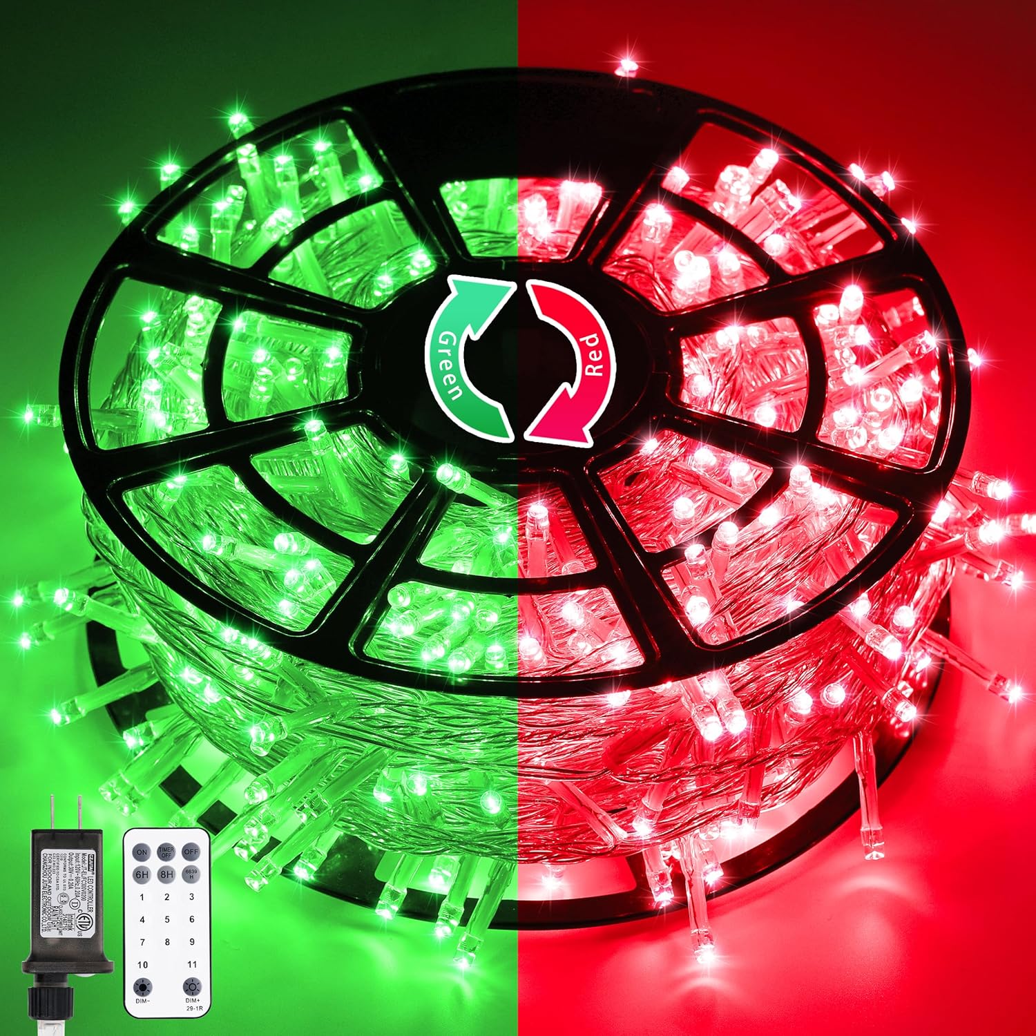 JMEXSUSS 168ft 600 LED Red to Green Halloween Lights Outdoor, Red Green Color Changing Christmas Lights, Christmas Twinkle String Lights Plug in for Tree Porch Yard Christmas Halloween Decorations