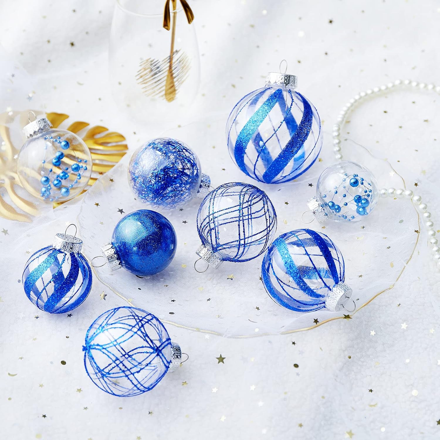 - Blue Christmas Ball Ornaments--These 24 clear Christmas decorations are made of durable and environmentally friendly plastic with excellent shatter resistance. These Christmas balls have shiny decorations and a transparent glaze base, which are perfect for hanging on your Xmas tree and decorating your Home with them,this will become part of your vacation.