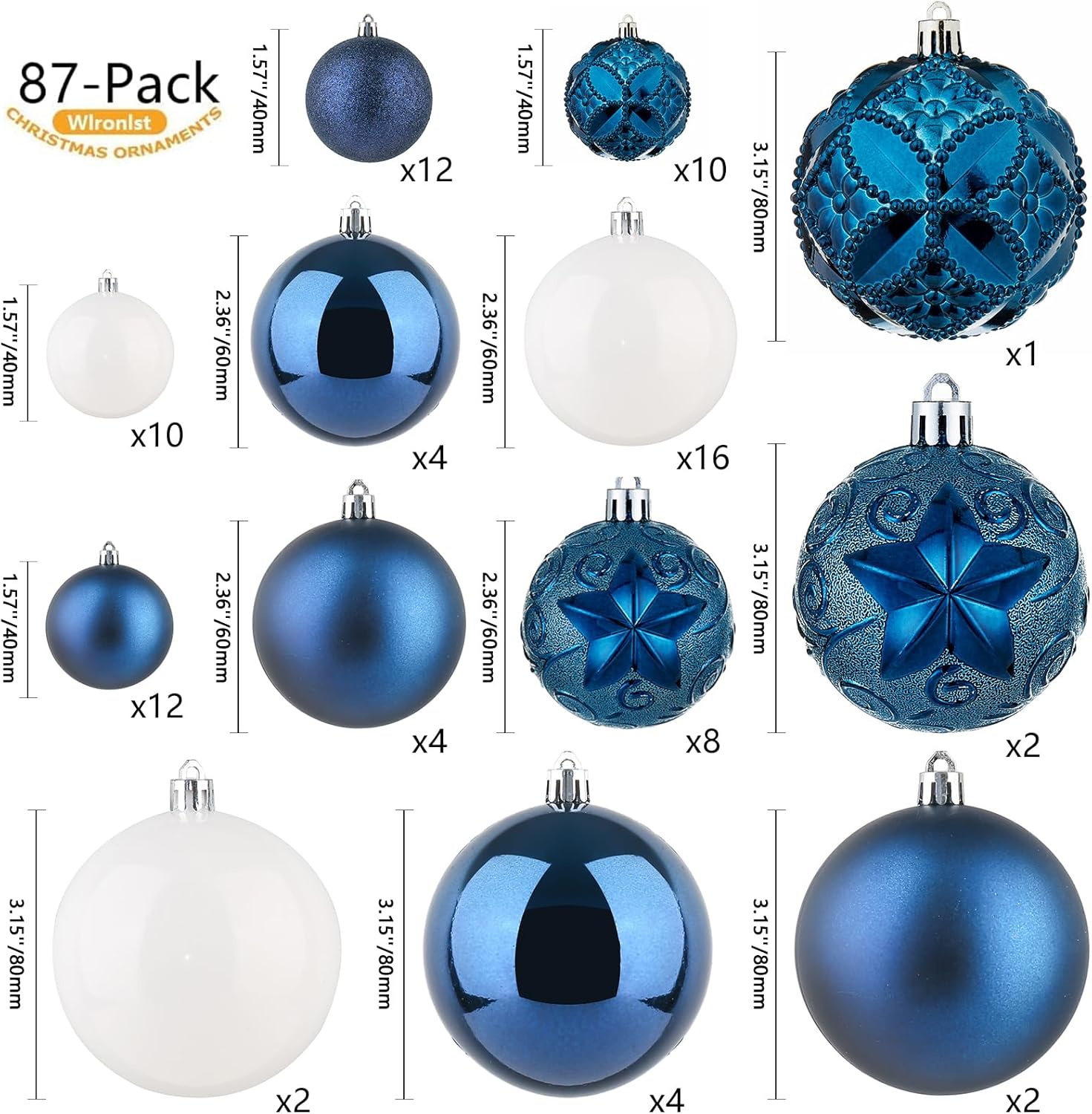 87-Pack Shatterproof Christmas Ball Ornaments Set, Christmas Tree Decorations with Hand-held Gift Package for Xmas Tree Holiday Wedding Party (Blue)