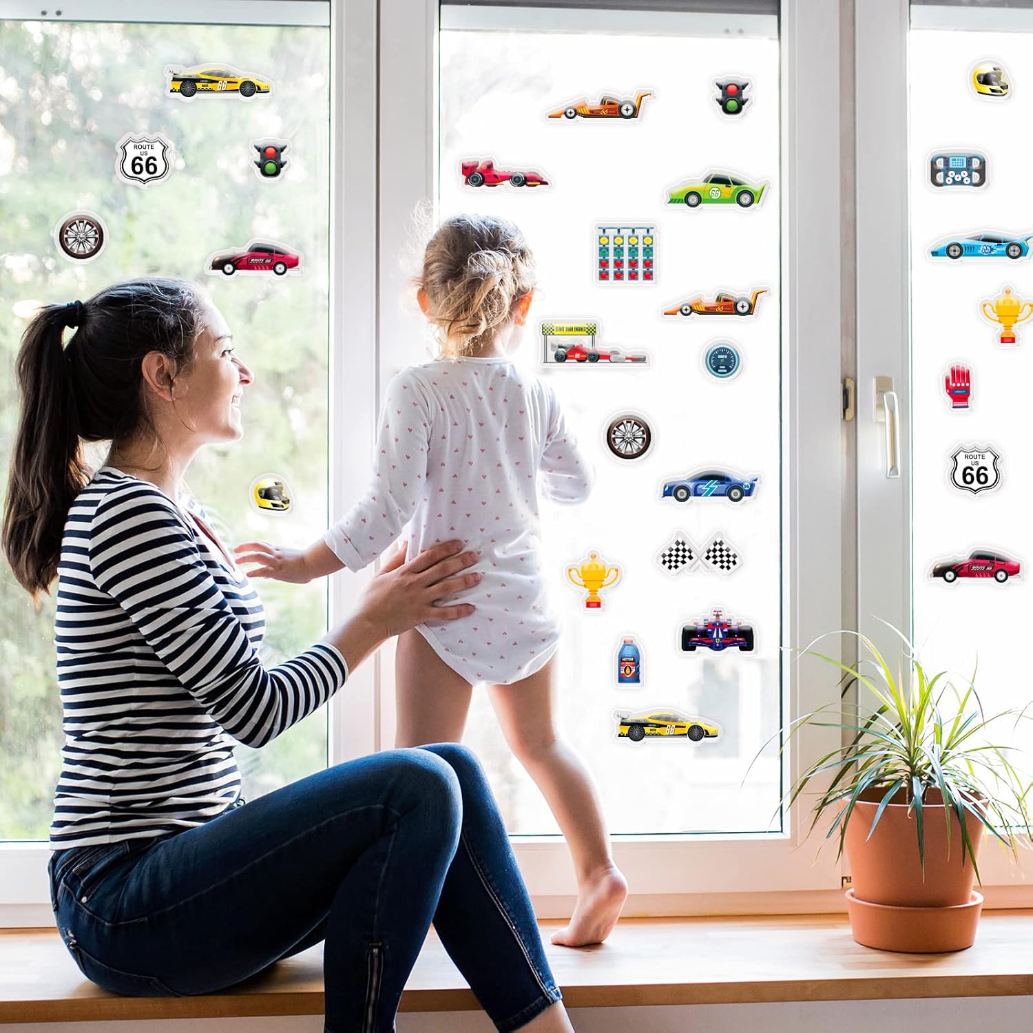 - Easy to use: just peel off the racing car thick gel clings from the plastic backing, then place it on any surface you want; if you want to rearrange it, just tear it off and move it.