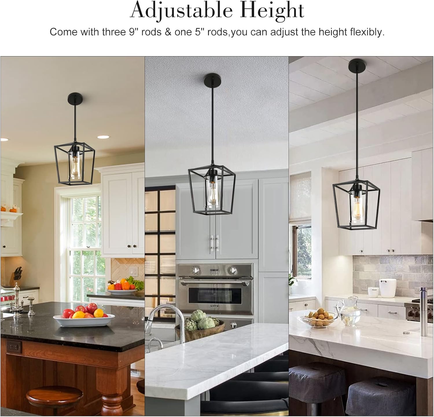 - 【Industrial Pendant Light】This black pendant lights is made of sturdy metal frame and clear glass lampshade, gives off soft light and gets modern statement on a classic lantern shape. This sleek and minimalistic pendant lighting for kitchen island would be a focal point in your kitchen island, dining room, front porch, hallway, foyer, entryway, ect.