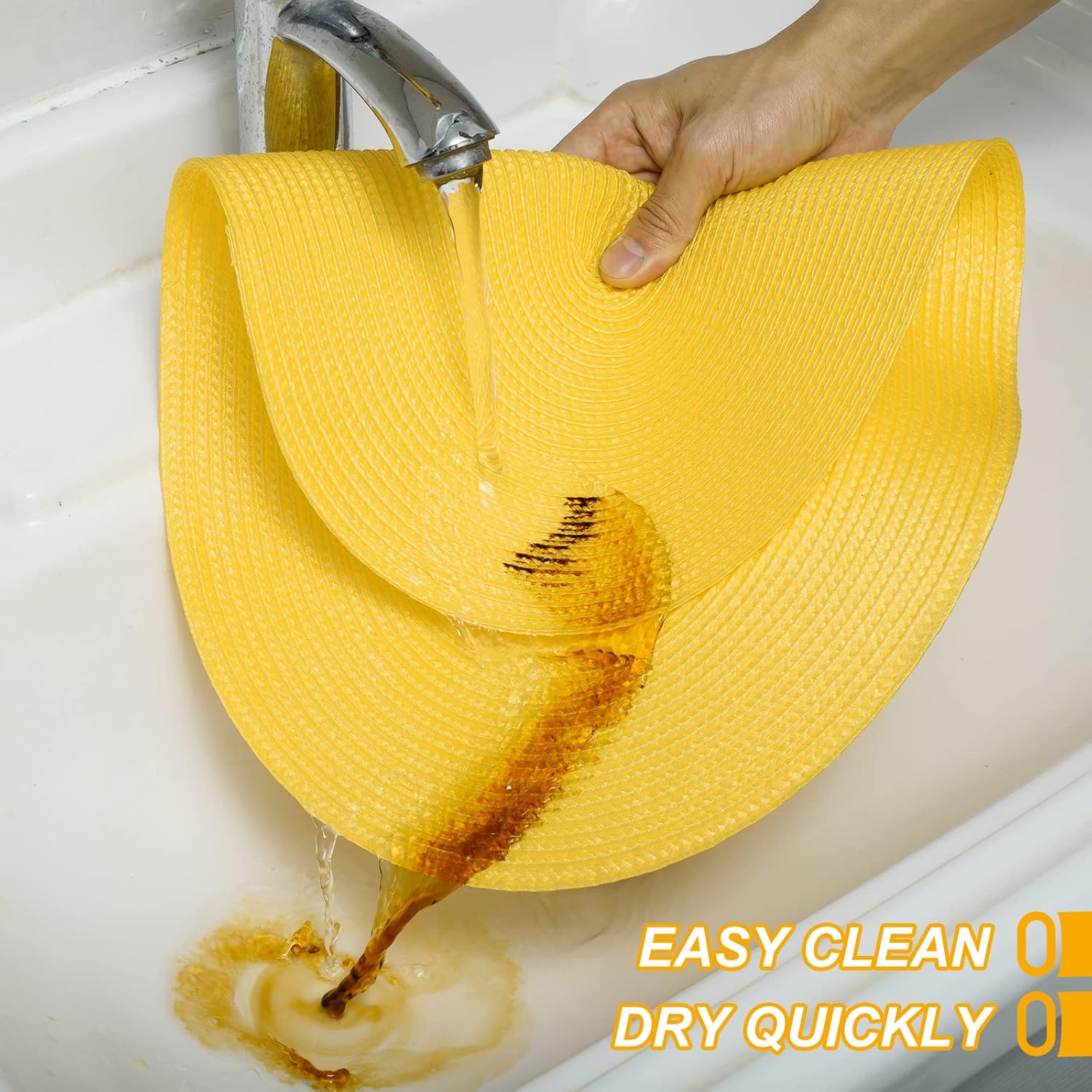 - Material: Crafted from 100% durable polypropylene, these hand-braided mats resist stains and maintain shape through repeated use. Ideal for daily meals or special occasions.