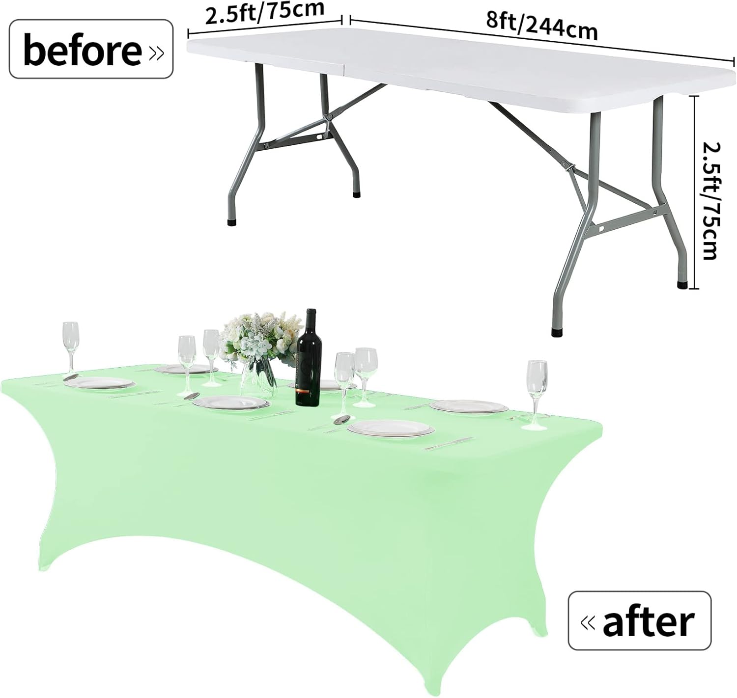 Spandex Table Cover for 8FT or 4ft or 6ft Table Universal Fitted Stretch Tablecloth for Party, Banquet, Wedding and Events-Mint