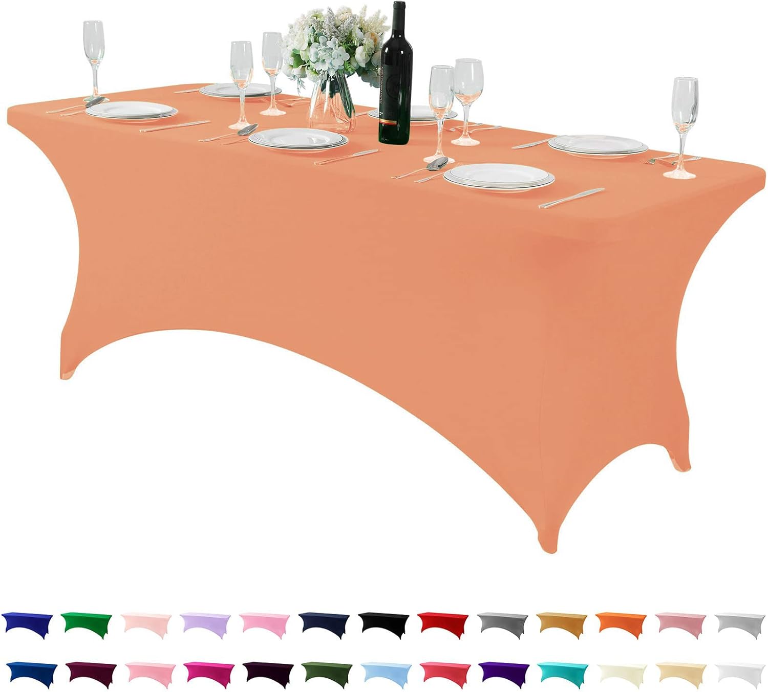 Spandex Table Cover for 6Ft or 4fT or 8ft Table Universal Fitted Stretch Tablecloth for Party, Banquet, Wedding and Events-Peach