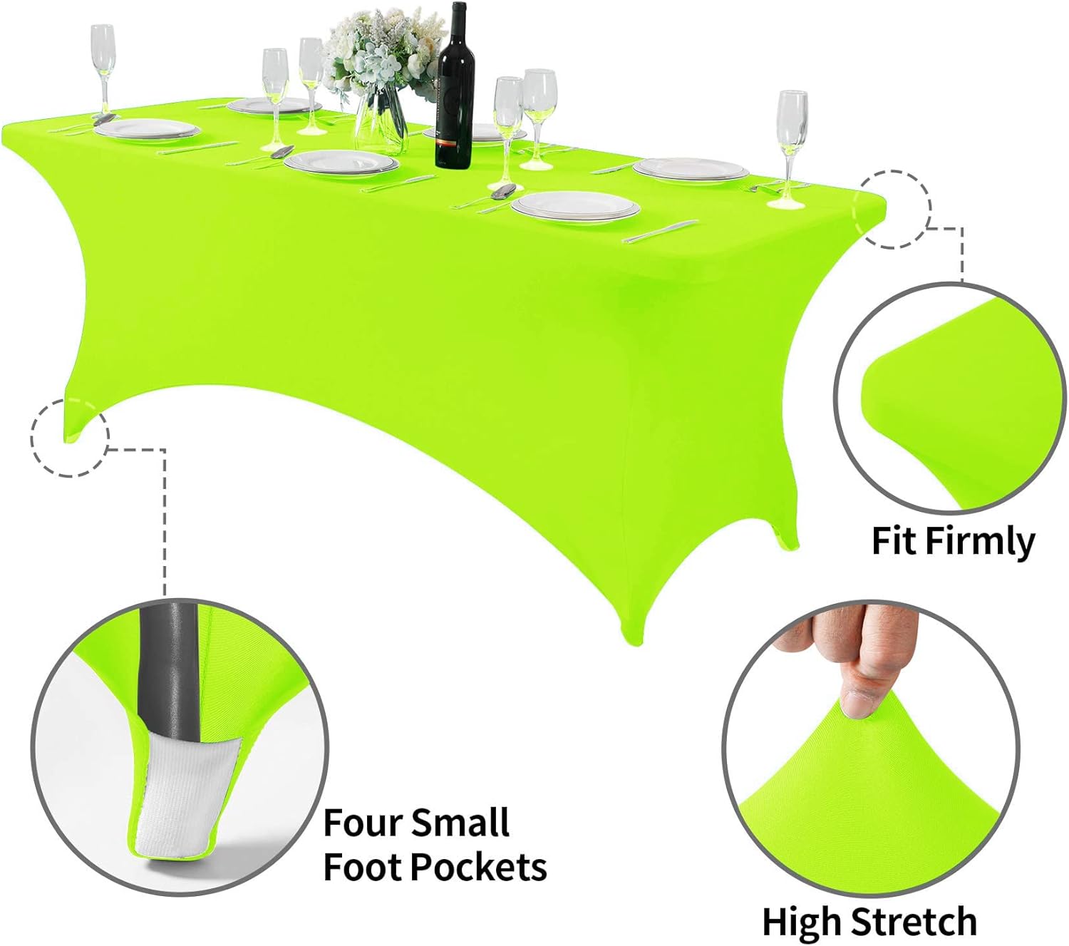 Spandex Table Cover for 6Ft or 4fT or 8ft Table Universal Fitted Stretch Tablecloth for Party, Banquet, Wedding and Events-Neon Lemon