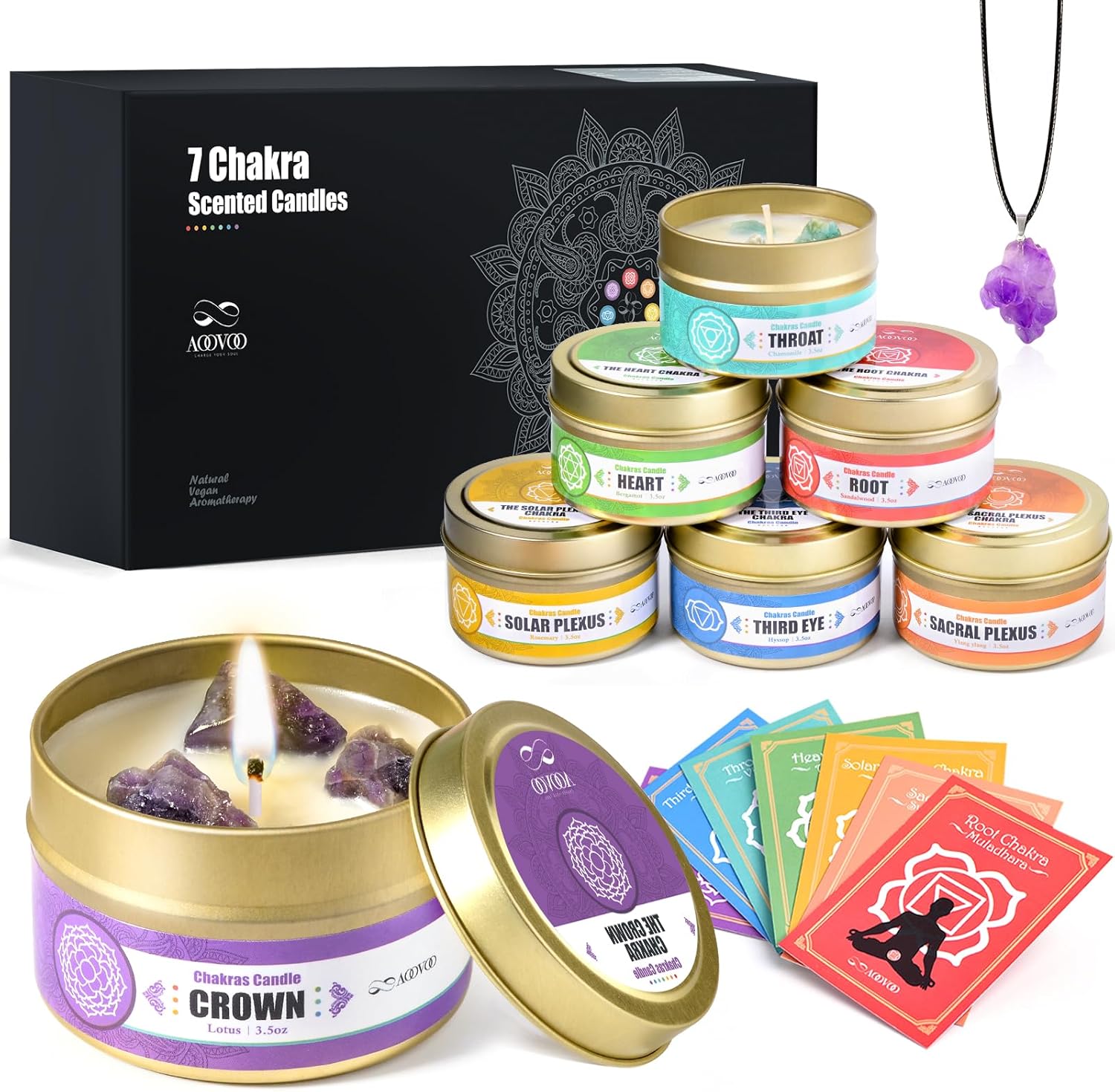 AOOVOO Chakra Candles with Healing Crystals - 7 Chakra Candle Set, Spiritual Gifts for Women, Aromatherapy Candle, Soy Candles for Women