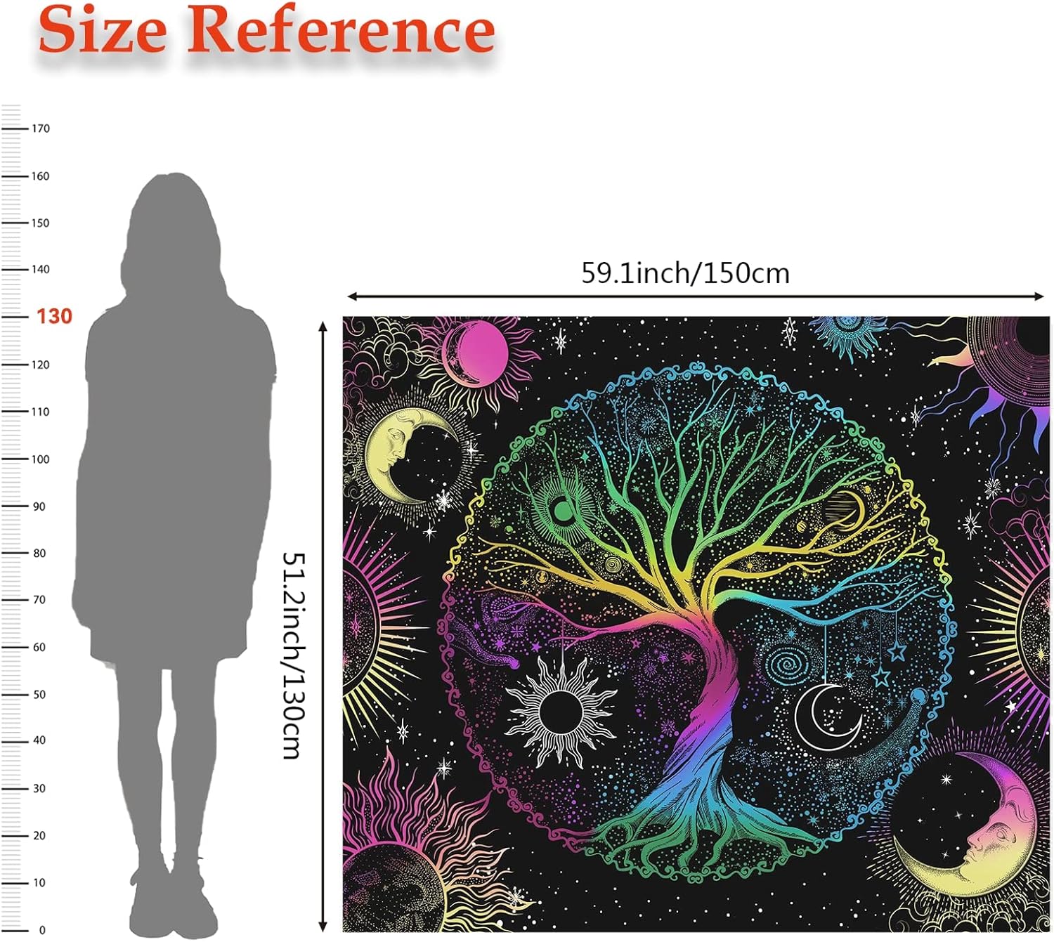 AACKart Blacklight Tapestry for Bedroom - Spiritual Tree of Life Wall Tapestry Glow in the Dark Wall Hanging 59.1 x 51.2 inches
