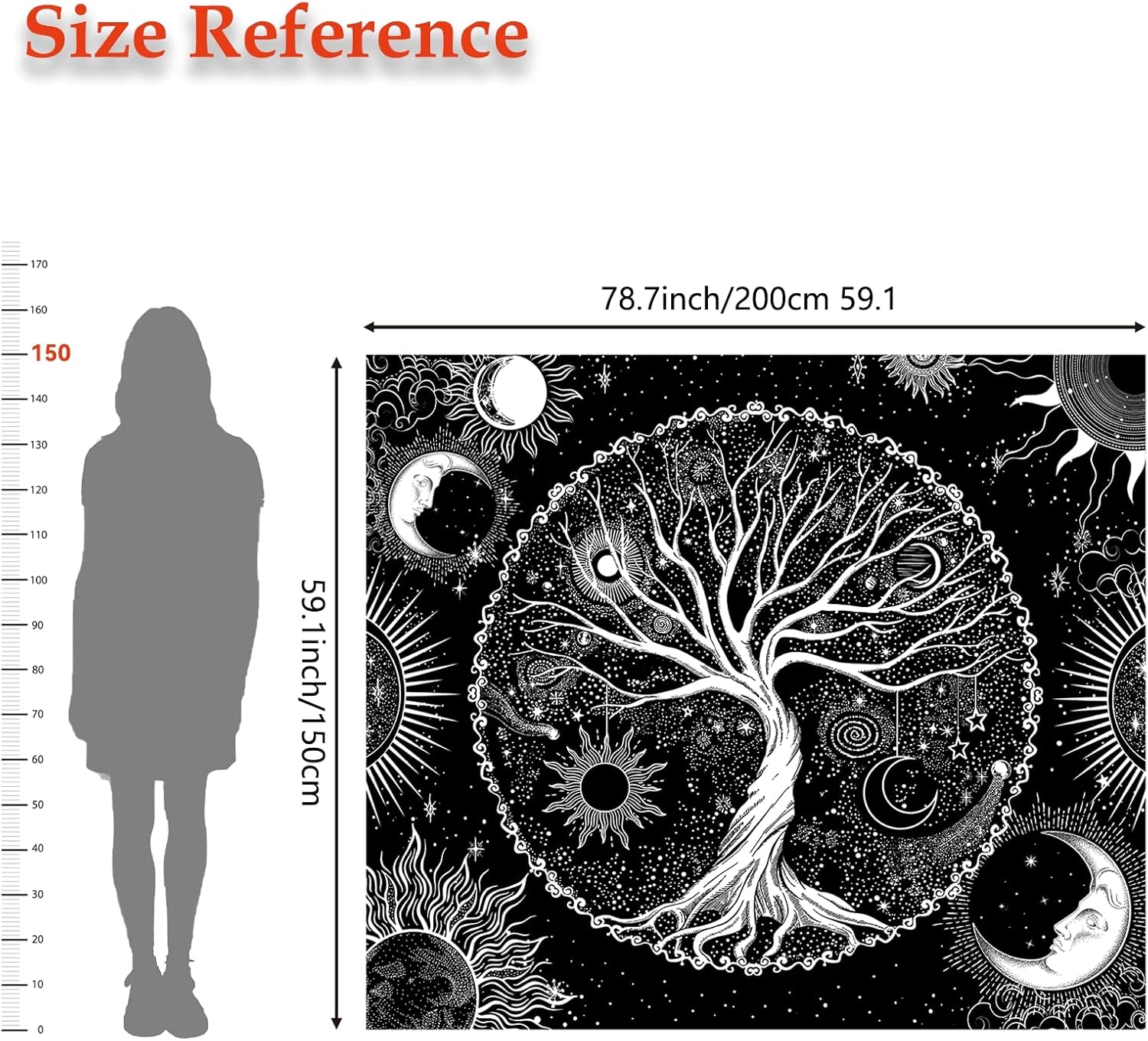 - This wall tapestry is unique design with tree, sun, moon, stars, and galaxy space elements. It's made from high quality polyester fabric, which is skin-friendly, soft, lightweight, durable, and has no peculiar smell