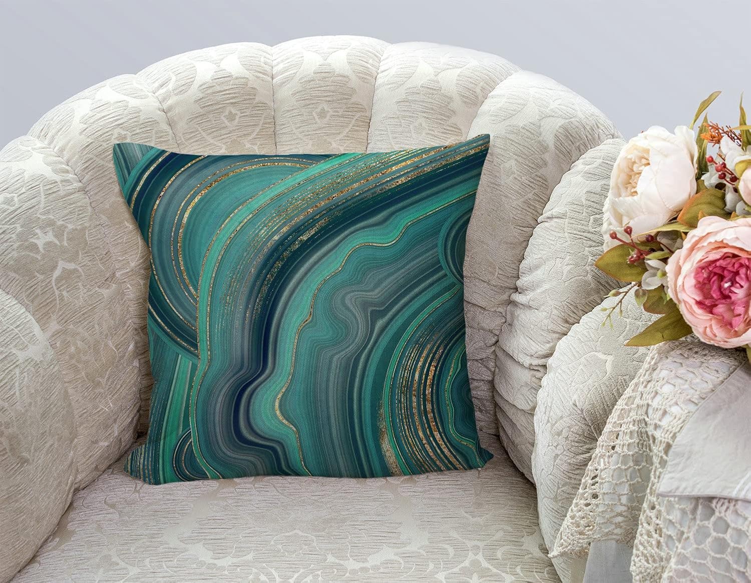TSSOHU Throw Pillow Cover 18x18 Inch Luxury Green Marble Home Decor Pillowcas Square Cushion Cover for Sofa Bed Couch