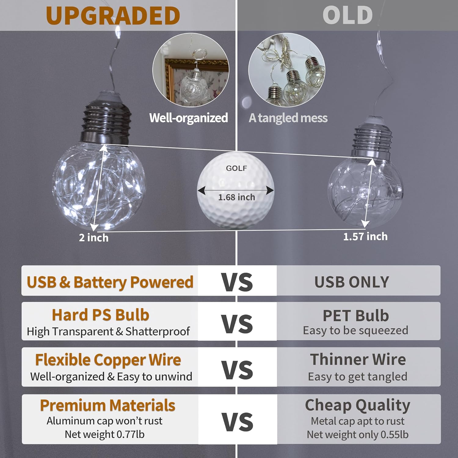 - Dual Power Options: The wishing ball lights features 5V low voltage operation. It features a 9.8ft USB plug cord to reach the USB device, and a AA battery box for battery power if there's no outlet nearby. It's easy and portable to illuminate the curtain lights. (AA batteries are not included)