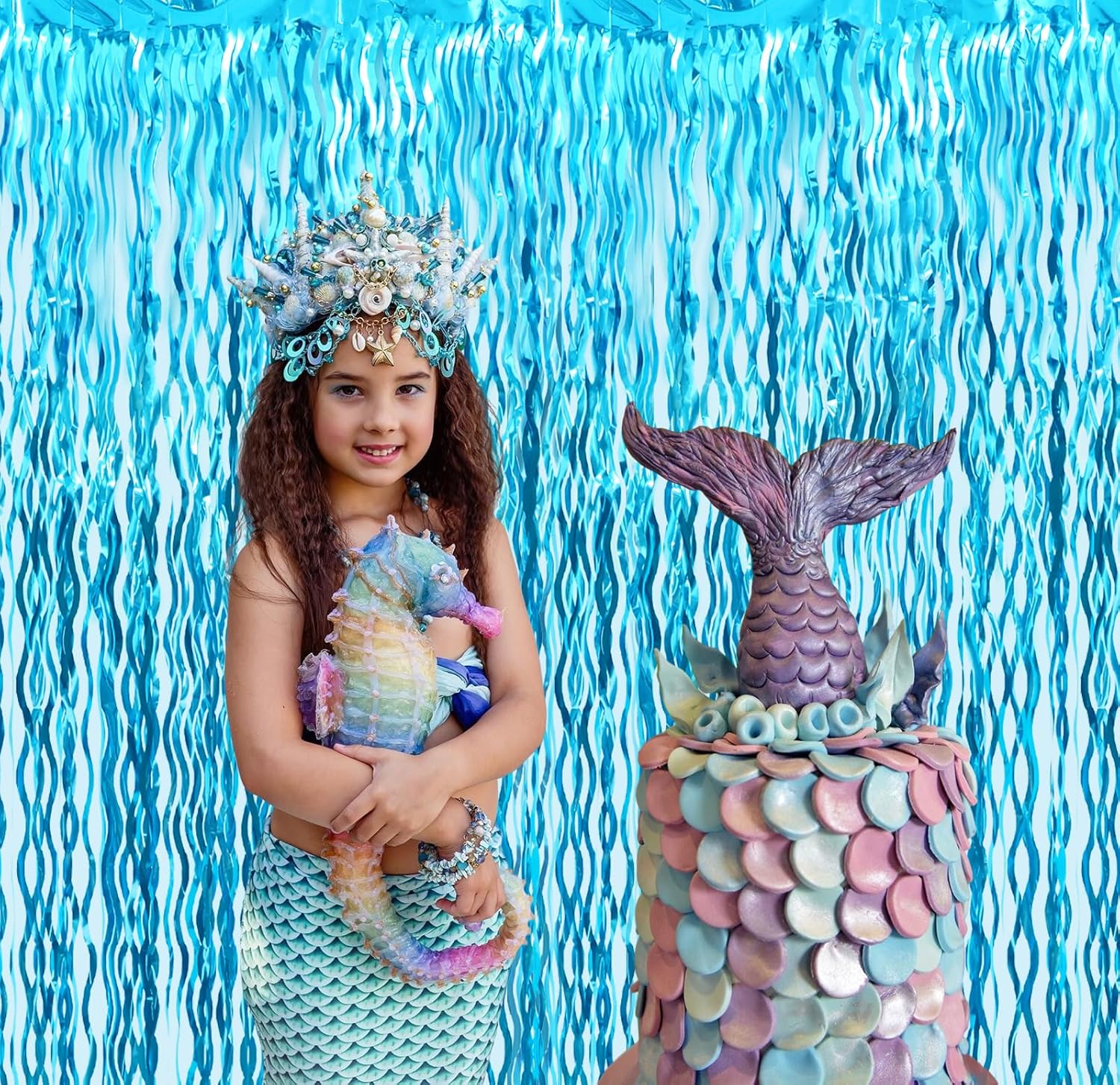 - Package Includes:4 pack wavy light blue foil fringe curtain,3.2 ft x 6.5 ft each,suitable for hanging on a door or coverage a wall fully