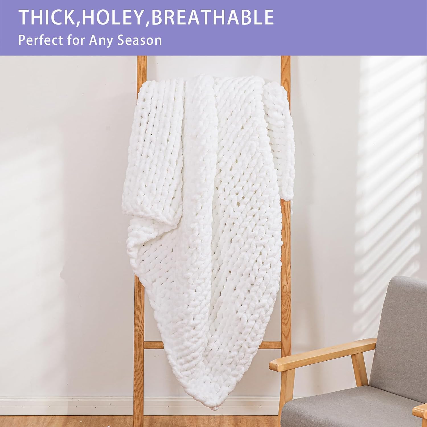 - Holey Chunky Knit Blanket: Our chunky throw blanket is 100% hand knit with cute holes, the special holey feature and classtic pattern make this plush blanket a great art décor throw blanket for couch, bed and sofa, bringing you warmth without overheating