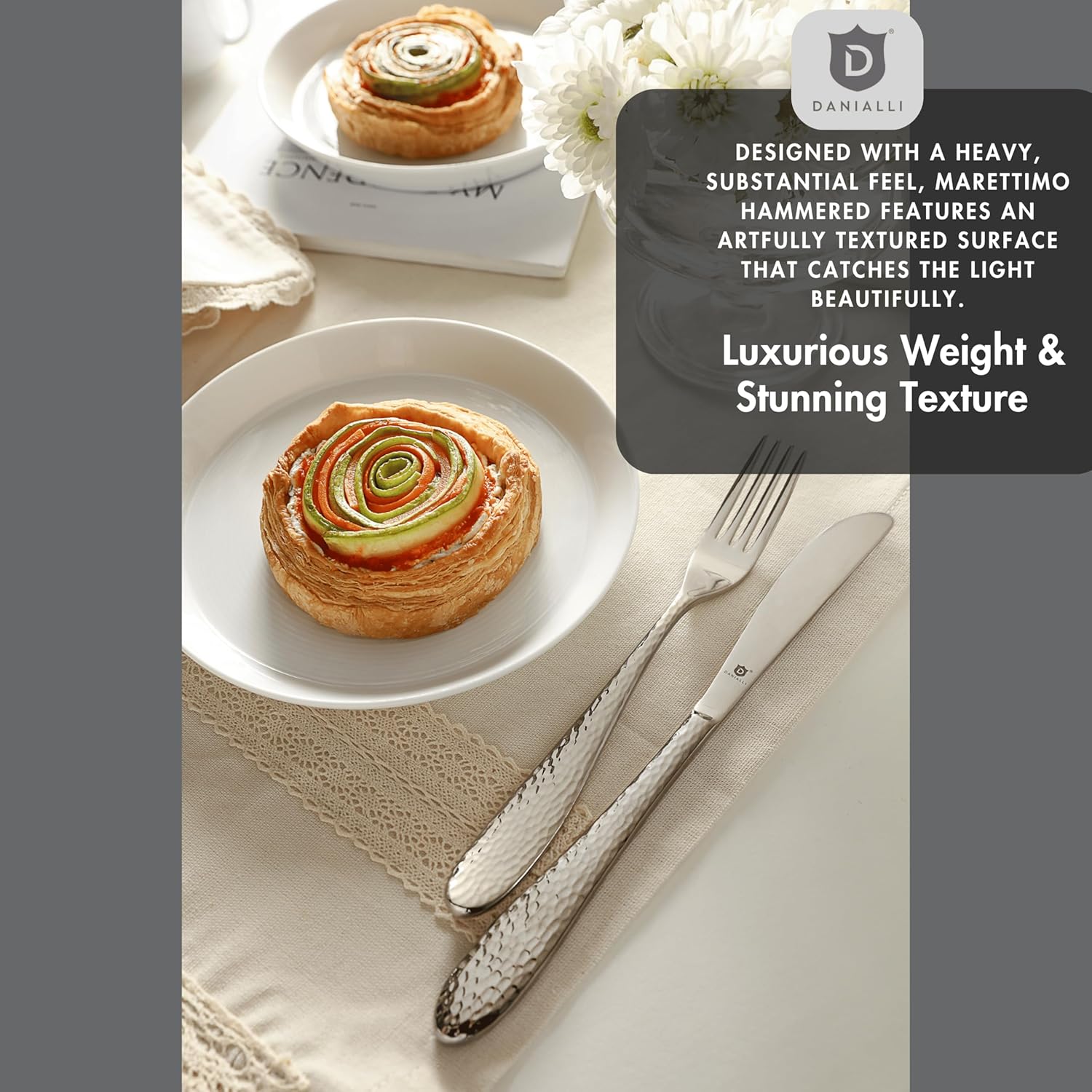 Hammered Silverware Set | Premium 18/10 Stainless Steel Flatware Service for 8 | Heavy-Duty & Dishwasher Safe | Built to Last (40-Piece, Marettimo Hammered)