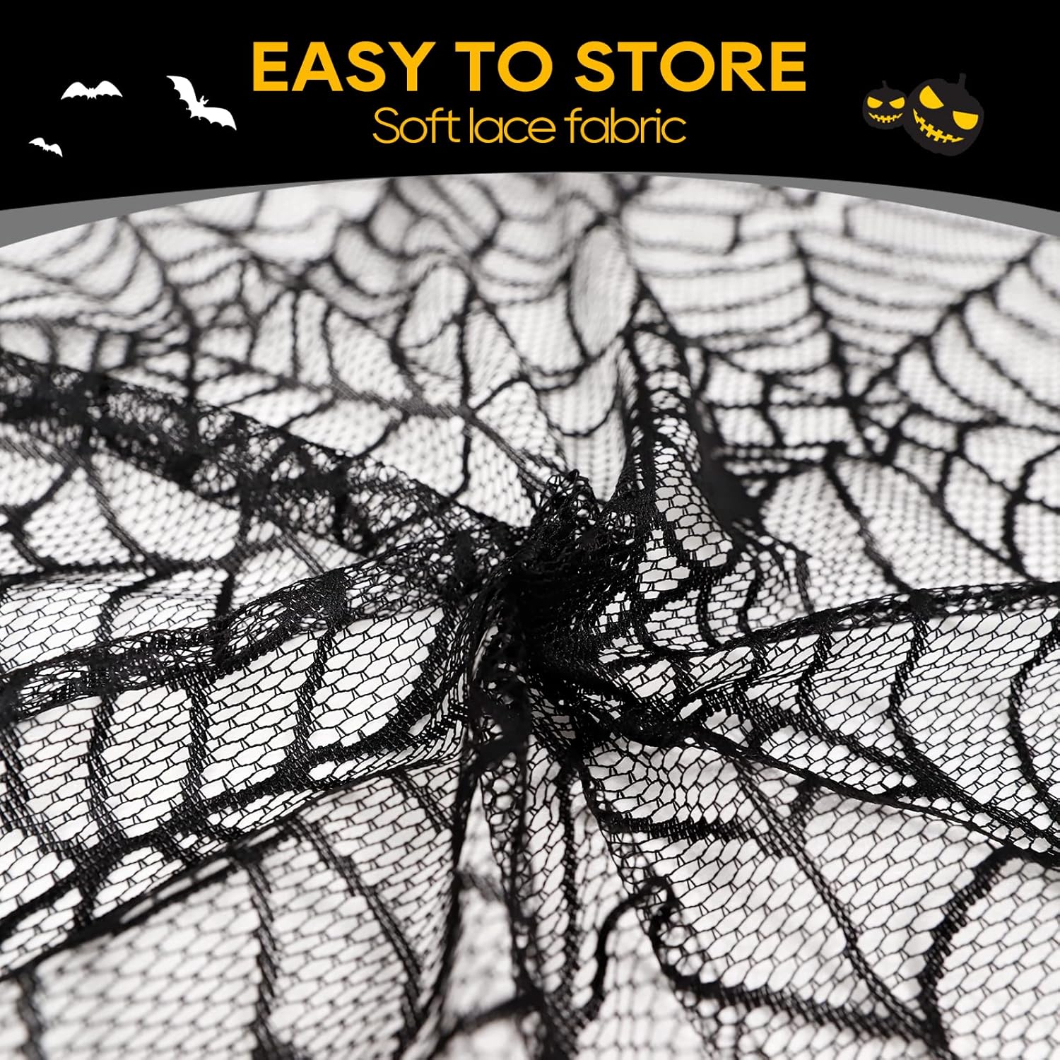 - PREMIUM QUALITY: This spider webs Halloween decorations is made of polyester fabric, which is anti-crease, durable, lightweight and also can be folded up and clean up easily. Size: 70 inch