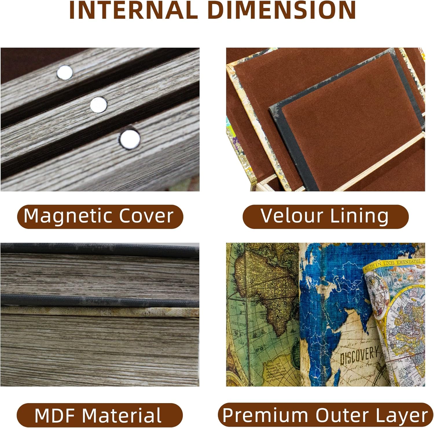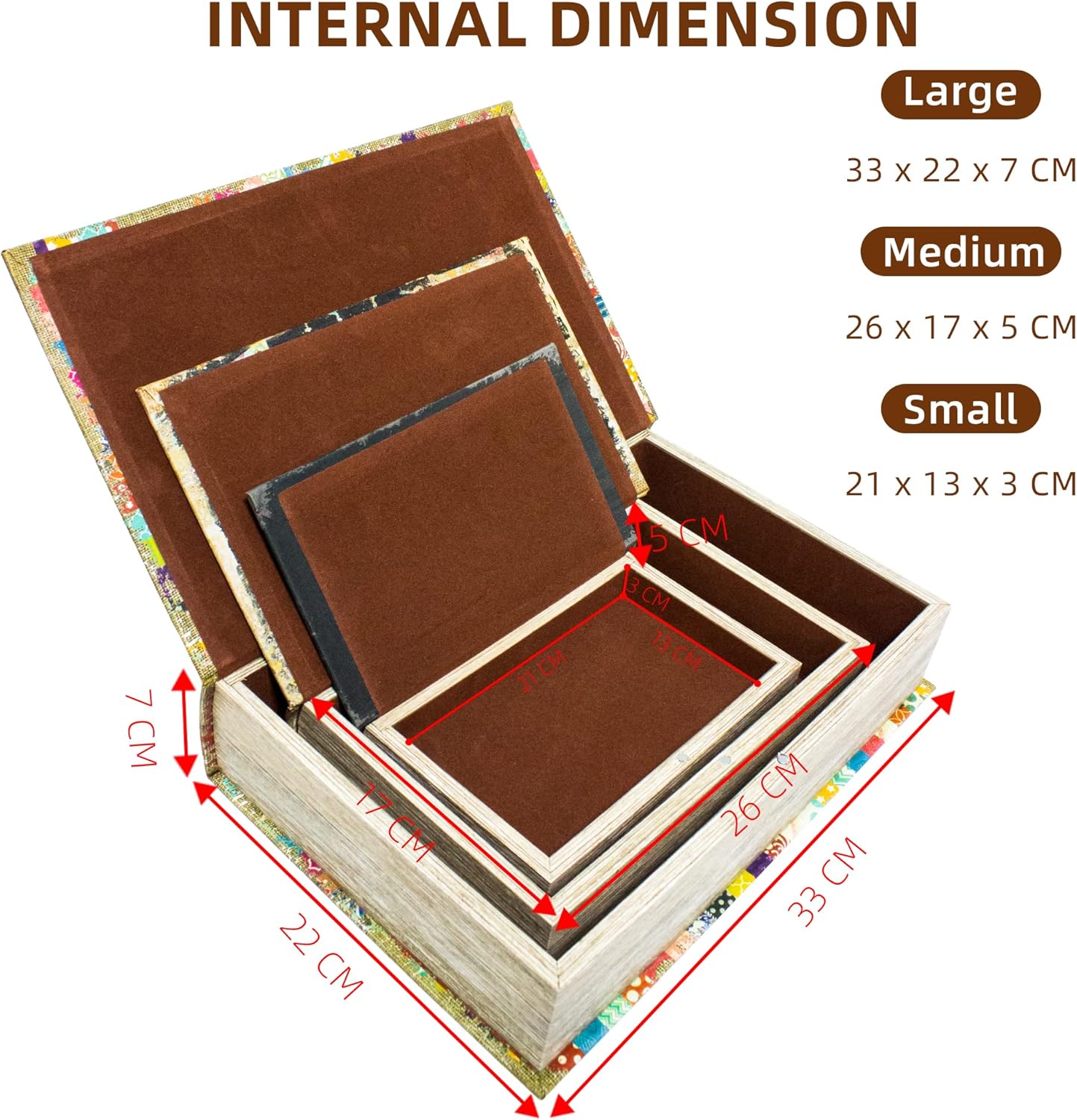 - The inside of this book box has a delicate plush lining and comes in three sizes, ideal for storing items of different sizes, such as jewelry, glasses, photos, letters, etc
