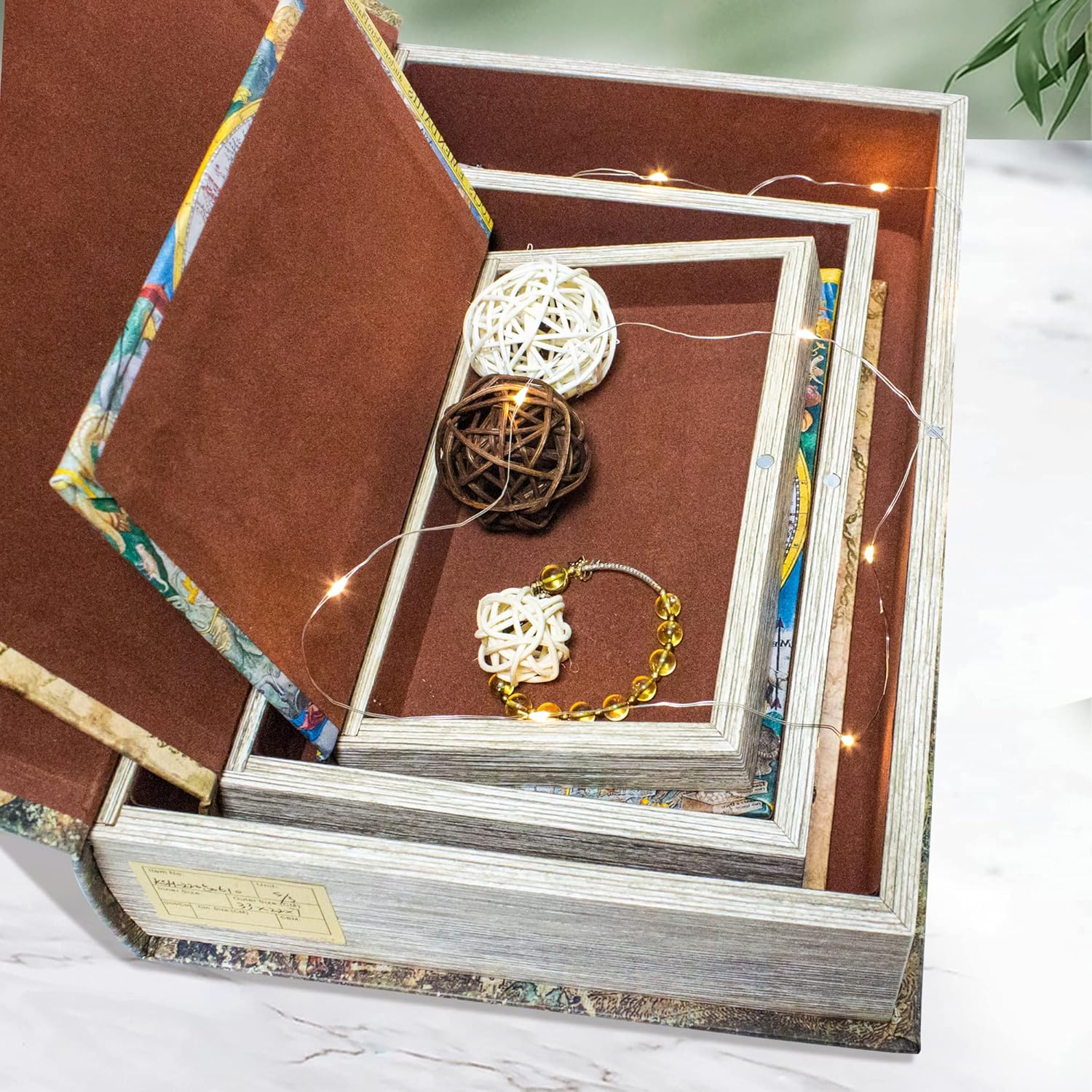 Decorative Book Box Set of 3, Fake Book Trinket Keepsake Storage Boxes with Ancient World Map Pattern, Graduation Gift