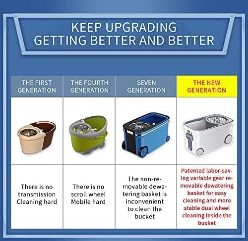 - 4x drier than foot pedal - Michao spin mop bucket has stronger spin wringing performance than those work with pedal, so the mop head wrings drier, save efforts and is more durable. You don’t have to worry pedal fracture.One finger can easily clean the mop, which is our unique patent design.length of the mop handle can be adjusted,flexible for different height of people,efficiency to avoid a serious sore back.