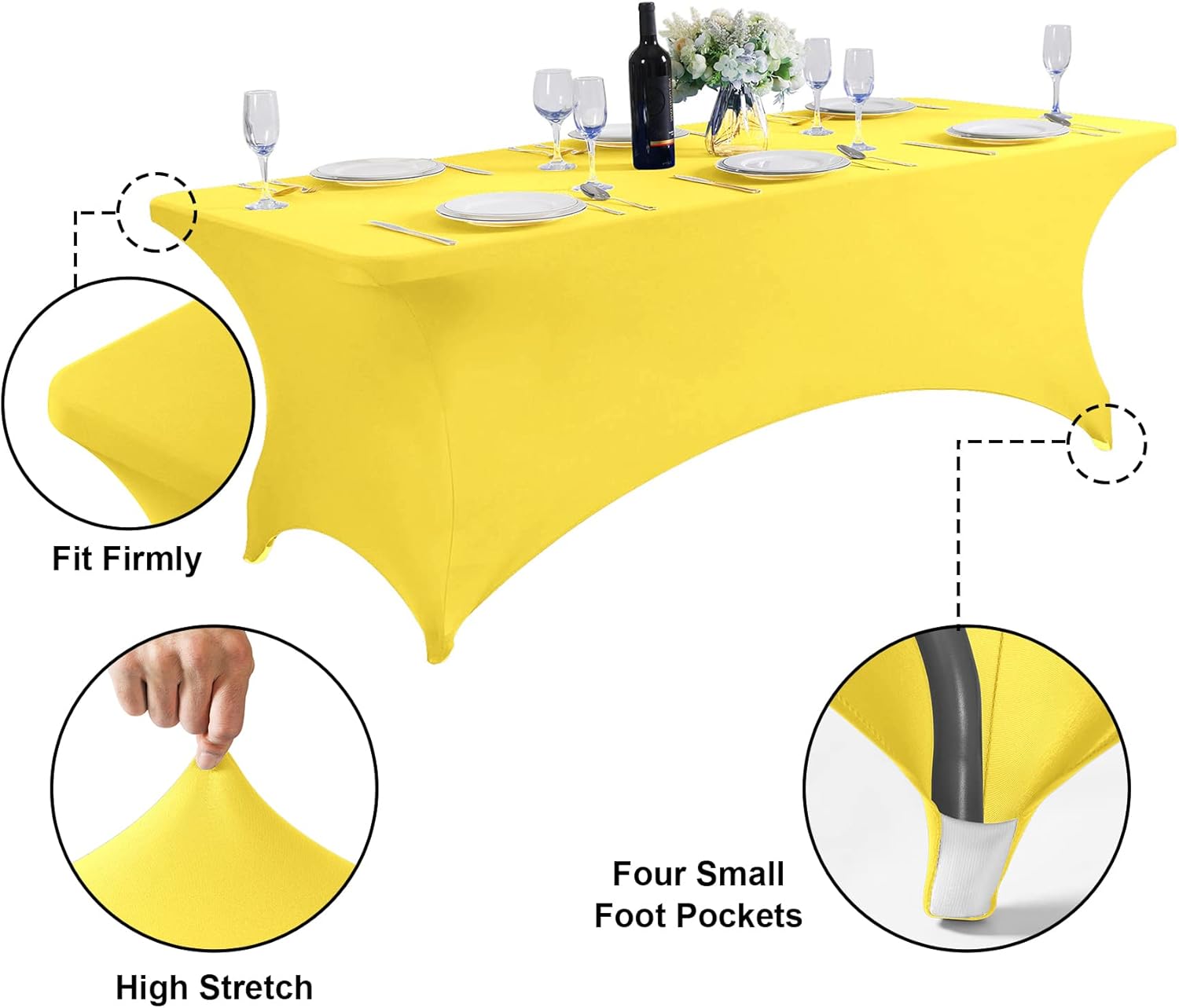 SuperO 2Pack Waterproof Spandex Table Cover for 6FT Table Universal Fitted Stretch Tablecloth for Party, Banquet, Wedding and Events-Yellow