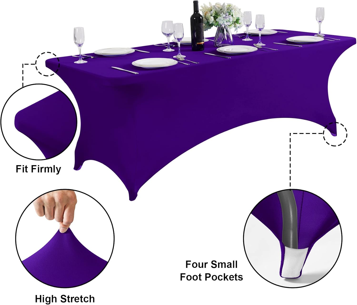 SuperO 2Pack Waterproof Spandex Table Cover for 4FT Table Universal Fitted Stretch Tablecloth for Party, Banquet, Wedding and Events-Purple