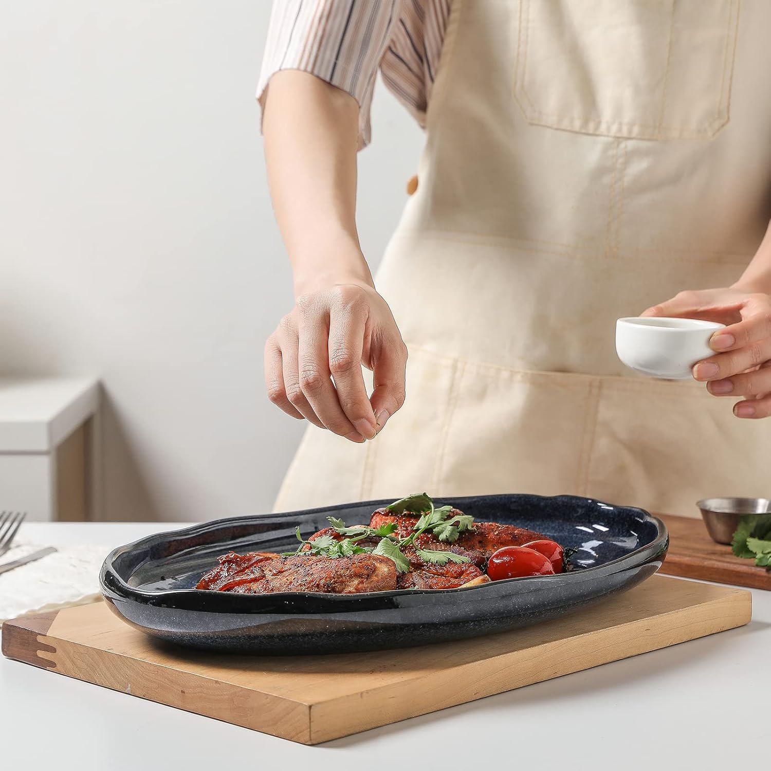 - UNIQUE NATURAL GLAZED: The glazed ceramic serving platter are durable, LEAD-FREE and Eco-friendly, ideal in the kitchen for everyday use, easy to clean with dishwasher or even hand wash with soap and water