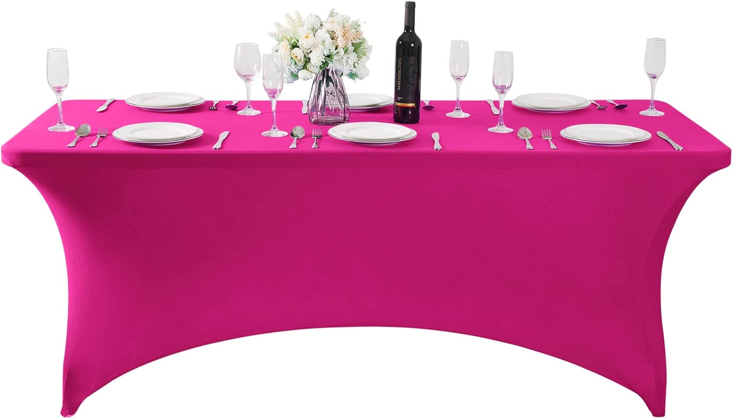 SuperO 2Pack Waterproof Spandex Table Cover for 6FT Table Universal Fitted Stretch Tablecloth for Party, Banquet, Wedding and Events-Fuchsia