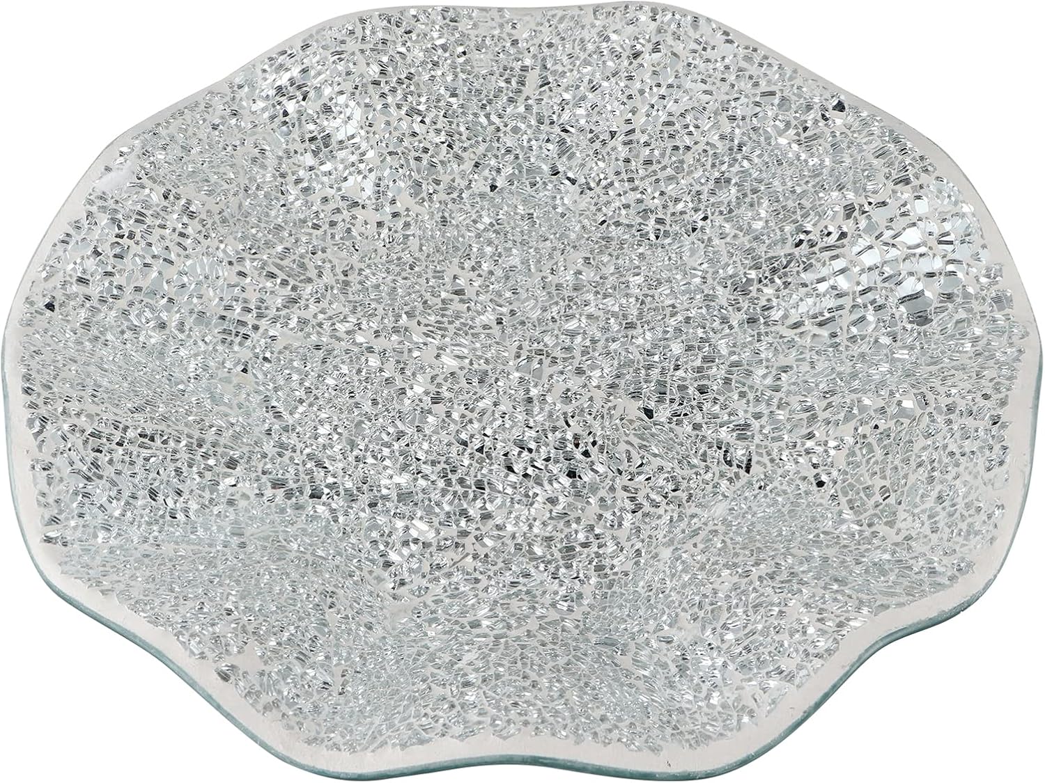 MDLUU Mosaic Centerpiece Tray, 11.6" Decorative Glass Plate, Home Decor Glass Bowl for Dining Room Table, Coffee Table, Gift (Silver)