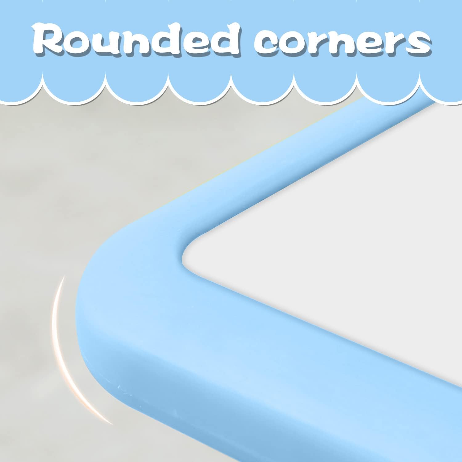 Children's Table and Chair Set Suitable for Boys and Girls Age 2-12 Height Adjustable Table top Can be Painted with 6 Seats Suitable for Family Learning Daily use (Sky blueBlue)
