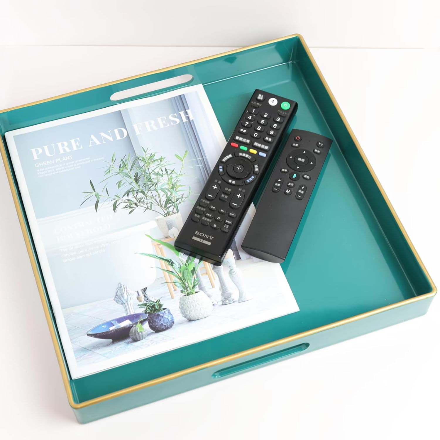 - Unique: Beautiful decorating trays with a glossy finish, giving them unique look appeal that adds to the home's charm. The organizer tray may also be used as a storage bin for small items like keys or TV remotes