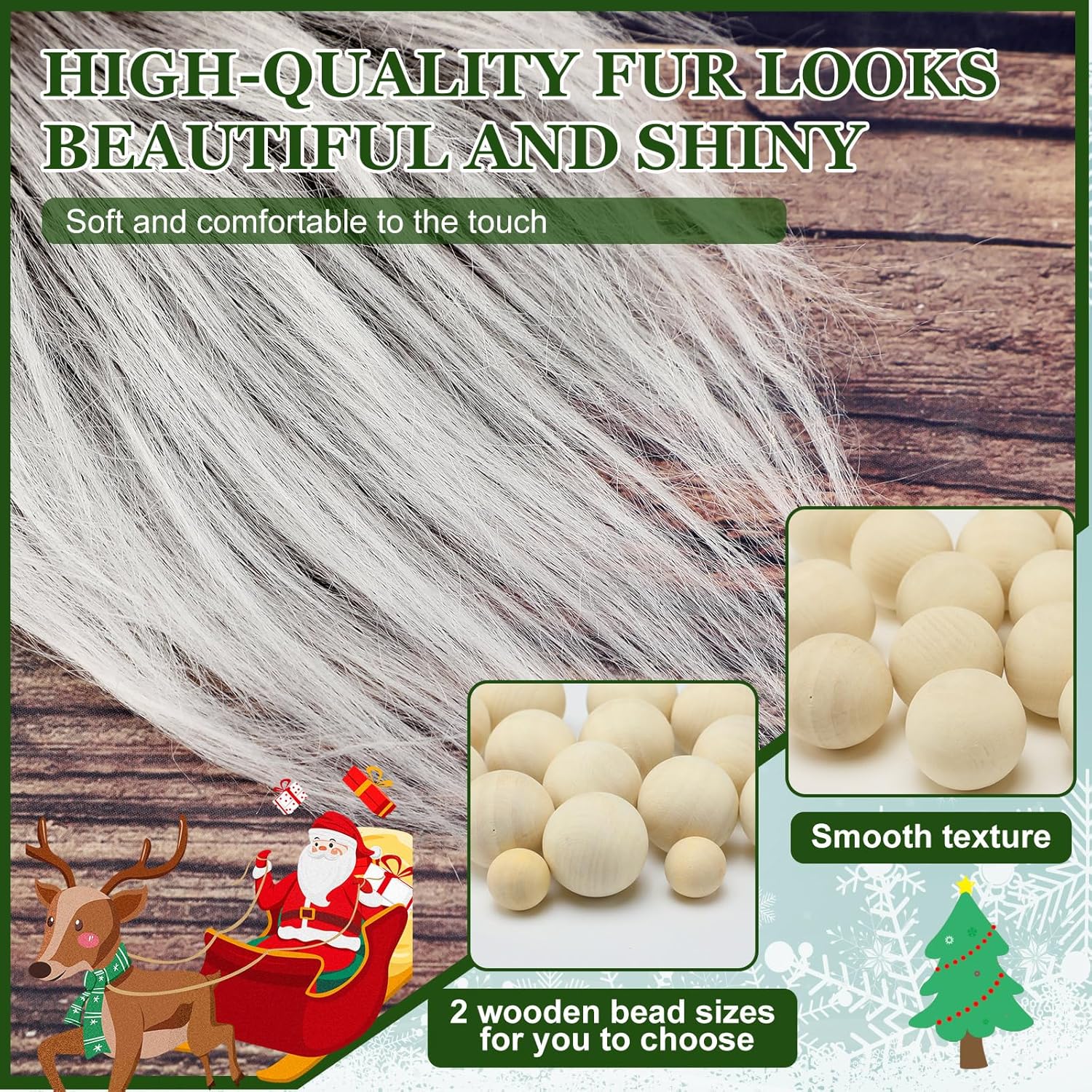 Sosation 60 Pcs Gnomes Beard Sets Faux Fur Pre Cut Gnomes Beard Foam Cone Foam Handmade Wood Balls for Halloween Christmas Day Crafts(Grey, Brown, White)