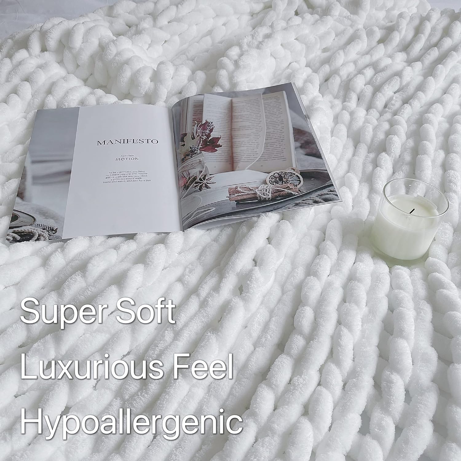 Maetoow Chenille Chunky Knit Blanket Throw (40×50 Inch), Handmade Warm & Cozy Blanket Couch, Bed, Home Decor, Soft Breathable Fleece Banket, Christmas Thick and Giant Yarn Throws, White