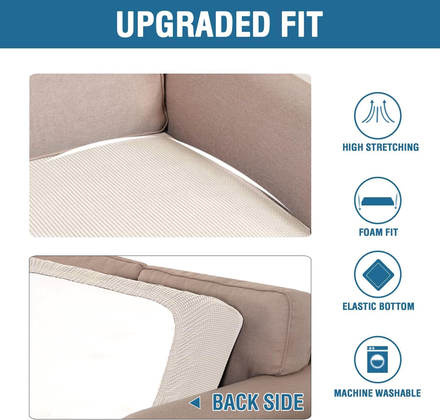 - NON SLIP: Effortless for installation (guide photos on selling page), sewn with thick elastic loops to cover the bottom edges. It is easy to install and take off, making your home more harmony, high recommended for both leather and cloth furniture