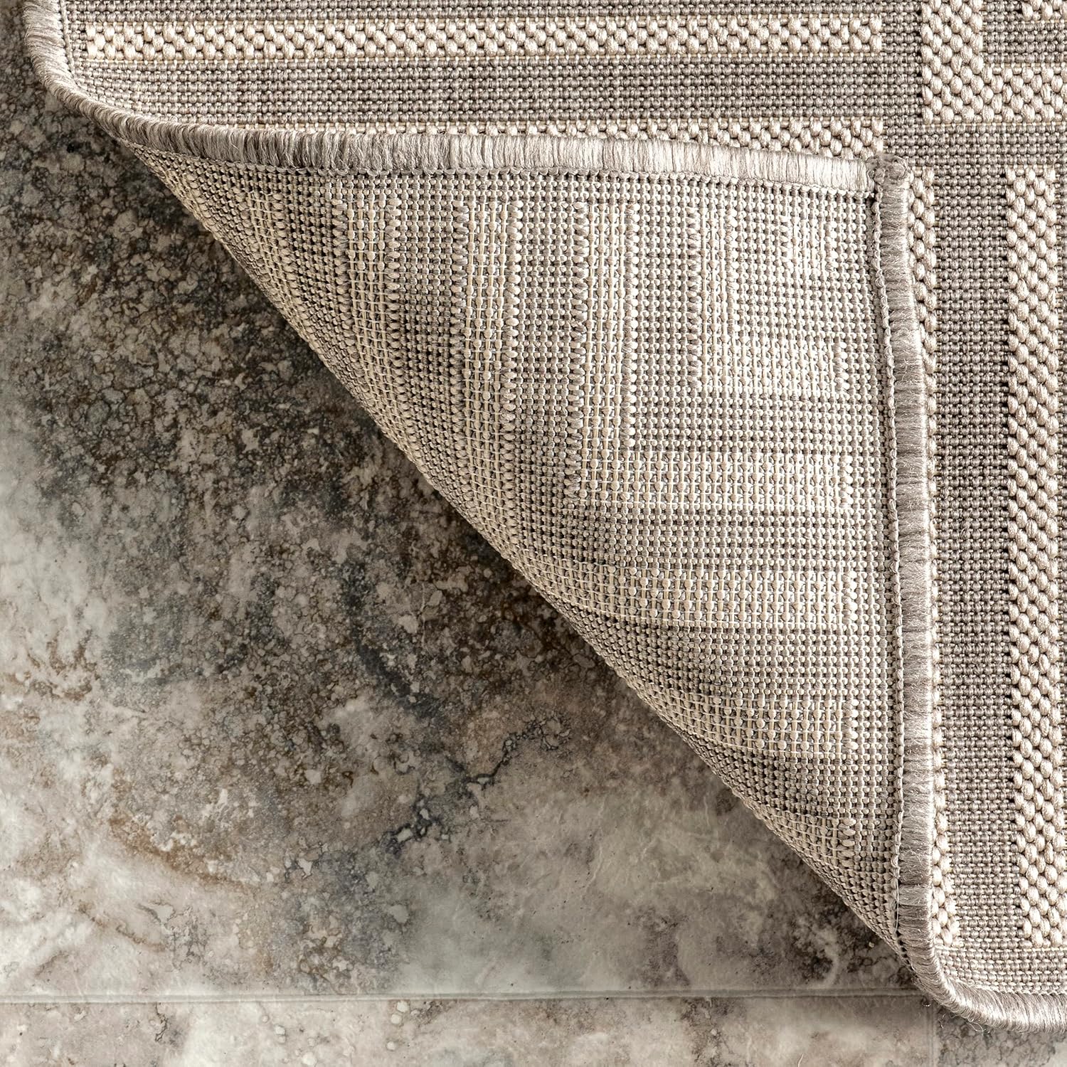nuLOOM 4' x 6' Outdoor Area Rug, Casual Design with Striped Border, Stain Resistant, Highly Durable, for Patio, Balcony, Bedroom, Living Room, Dining Room, Bathroom, Light Grey