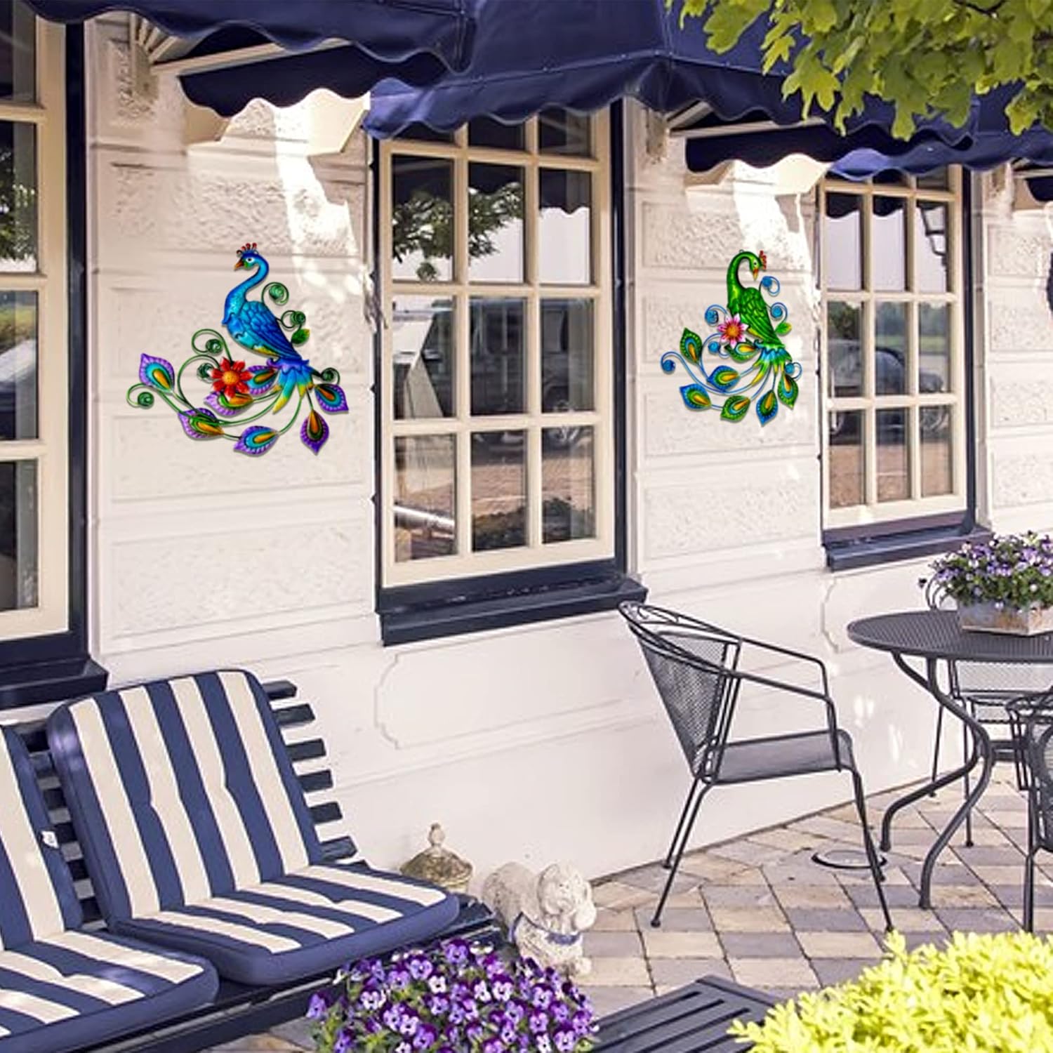 - 【Outdoor Tropical Decor】Decorate Your Home With These Tropical Metal Peacocks, When Hung On The Wall Or Fence, The Metal Peacocks Will Look Like Two Real Peacocks, Dancing In Your Yard. Vivid Peacocks Decorate Your Garden, Room, Add Vibrant Colors And Tropical Flair Around Your House And Garden.