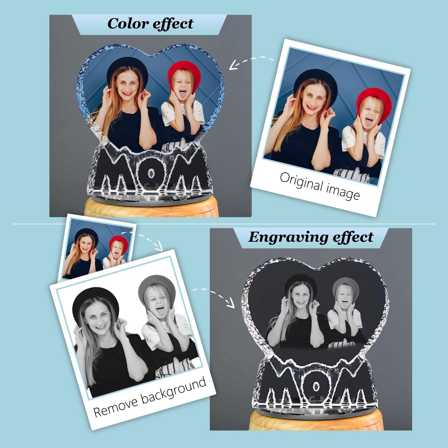to My Beautiful Mom Gifts Personalized Heart-Shaped 3D Crystal Photo Frame, with Bluetooth Rose Audio, Mom Night Light Gifts for Mother's Day, Birthday, Thanksgiving, Christmas