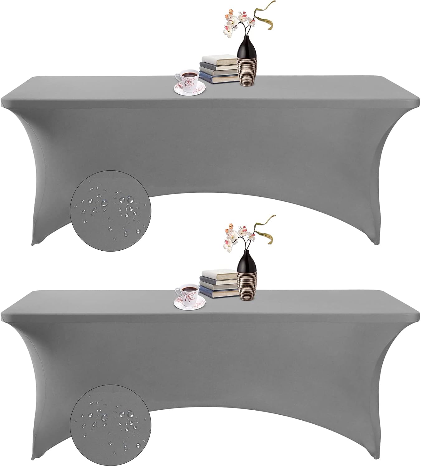 2Pack Spandex Waterproof Table Covers 8ft,Spandex 8ft Waterproof Table Cover for Party,Wedding, Banquet, and Events(Gary)