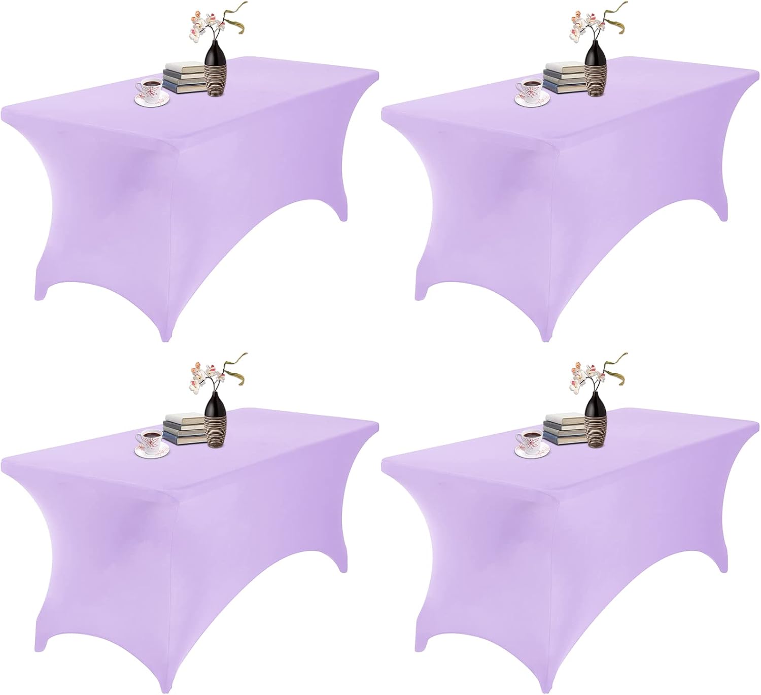 4Pack Spandex Waterproof Table Covers 6ft,Spandex 6ft Waterproof Table Cover for Party,Wedding, Banquet, and Events(Lavender)