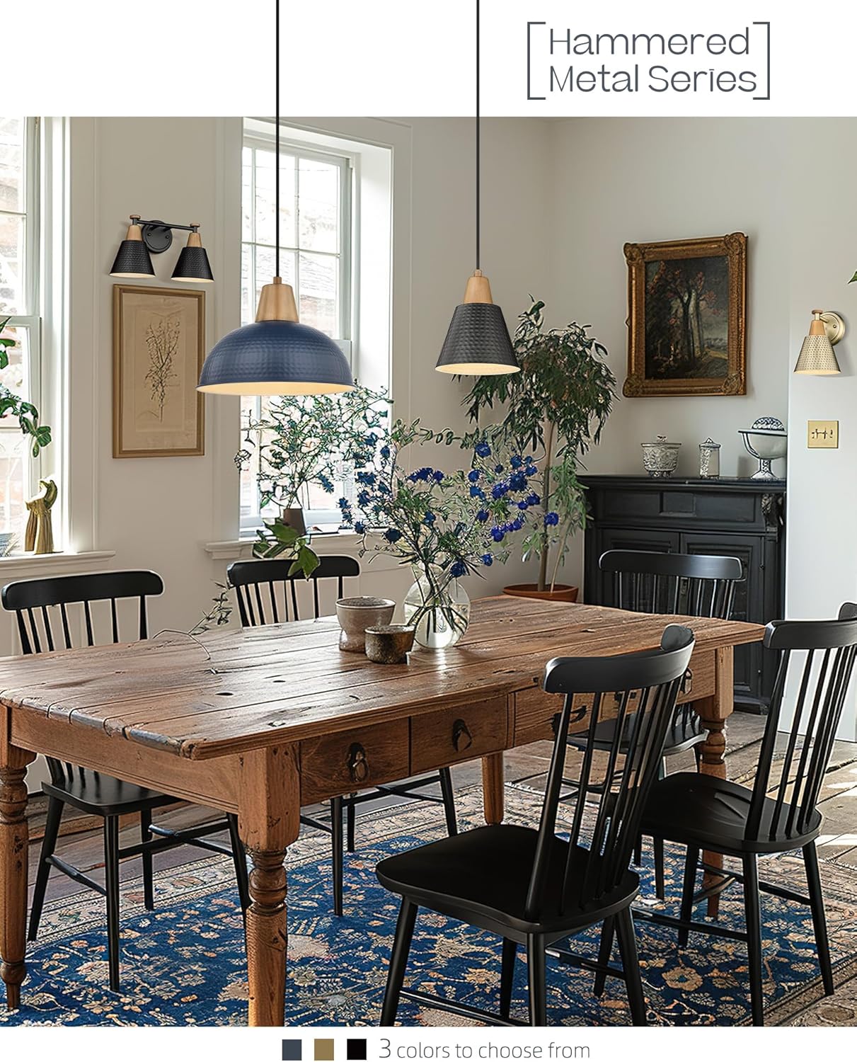 FEMILA Black Bathroom Light Fixtures, 2-Light Bathroom Vanity Lights Over Mirror with Hammered Metal Shade, Modern Wall Sconces Lighting for Kitchen Bedroom Living Room, 4FG59B-2W BK