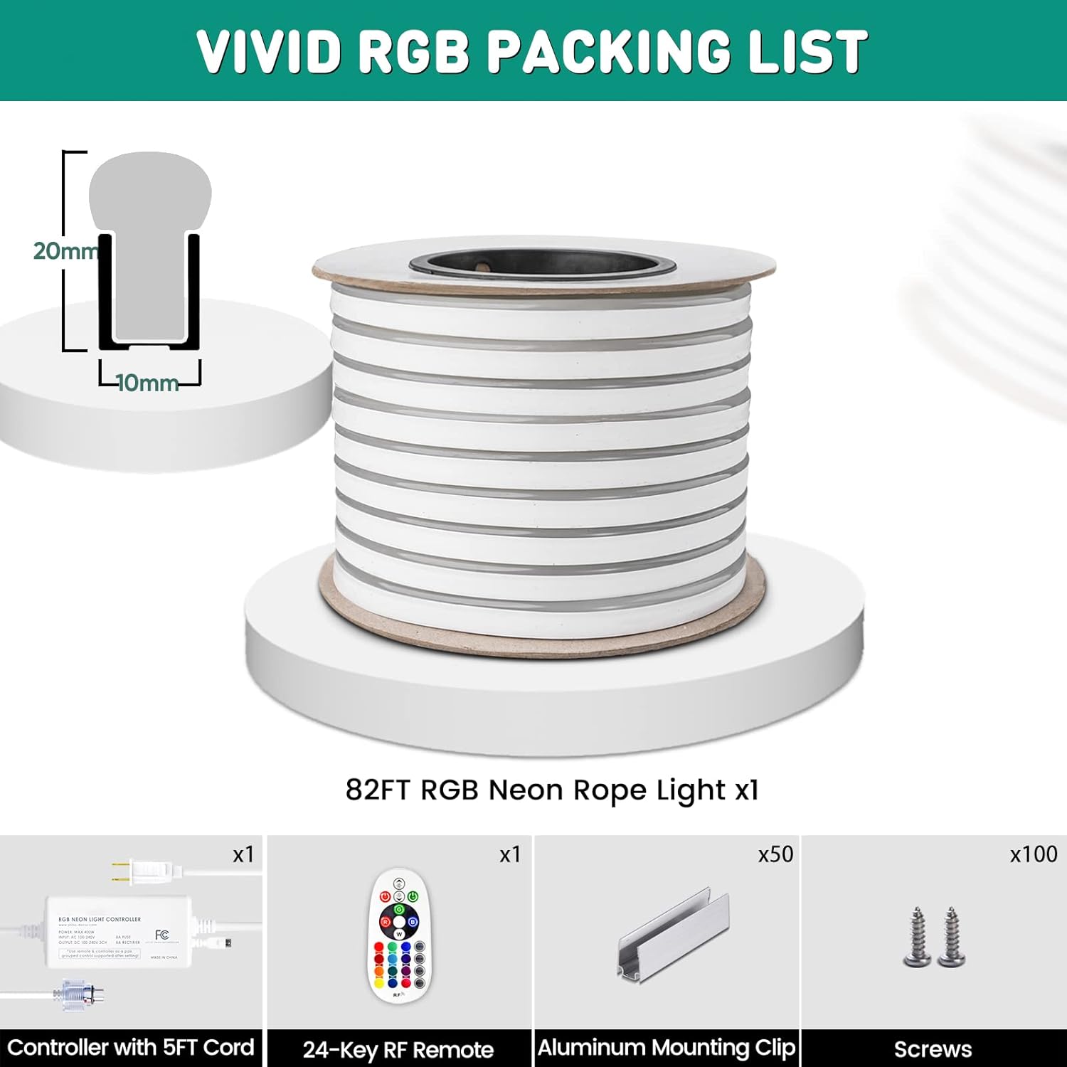 - Remote Sync & Command--Control up to 4 neon ropes with one remote! Effortlessly pair multiple strips for perfectly synchronized colors, effects, and brightness—ideal for large-scale setups. The 24-key RF remote controls 16 static colors, speed, and 4 dynamic modes within a range of 66 ft. NOTE: This is NOT color chasing Light.