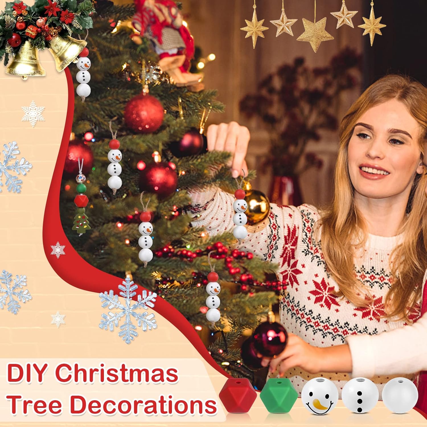 - ๐๐ซ๐๐ฆ๐ข๐ฎ๐ฆ ๐๐ข๐ฅ๐ข๐๐จ๐ง๐ ๐๐๐ญ๐๐ซ๐ข๐๐ฅ There comes with silicone beads and wooden beads. The beads are made of premium soft elastic silicone material, durable and not easy to deform. With a smooth surface, the craft focal beads will make finished ornament look more sophisticated and make you enjoy a great handicraft experience. Moreover, the Christmas beads can be washed with rinse in soapy or warm water to keep clean bright in gorgeous color for a long-time storage, and not easy to fade.