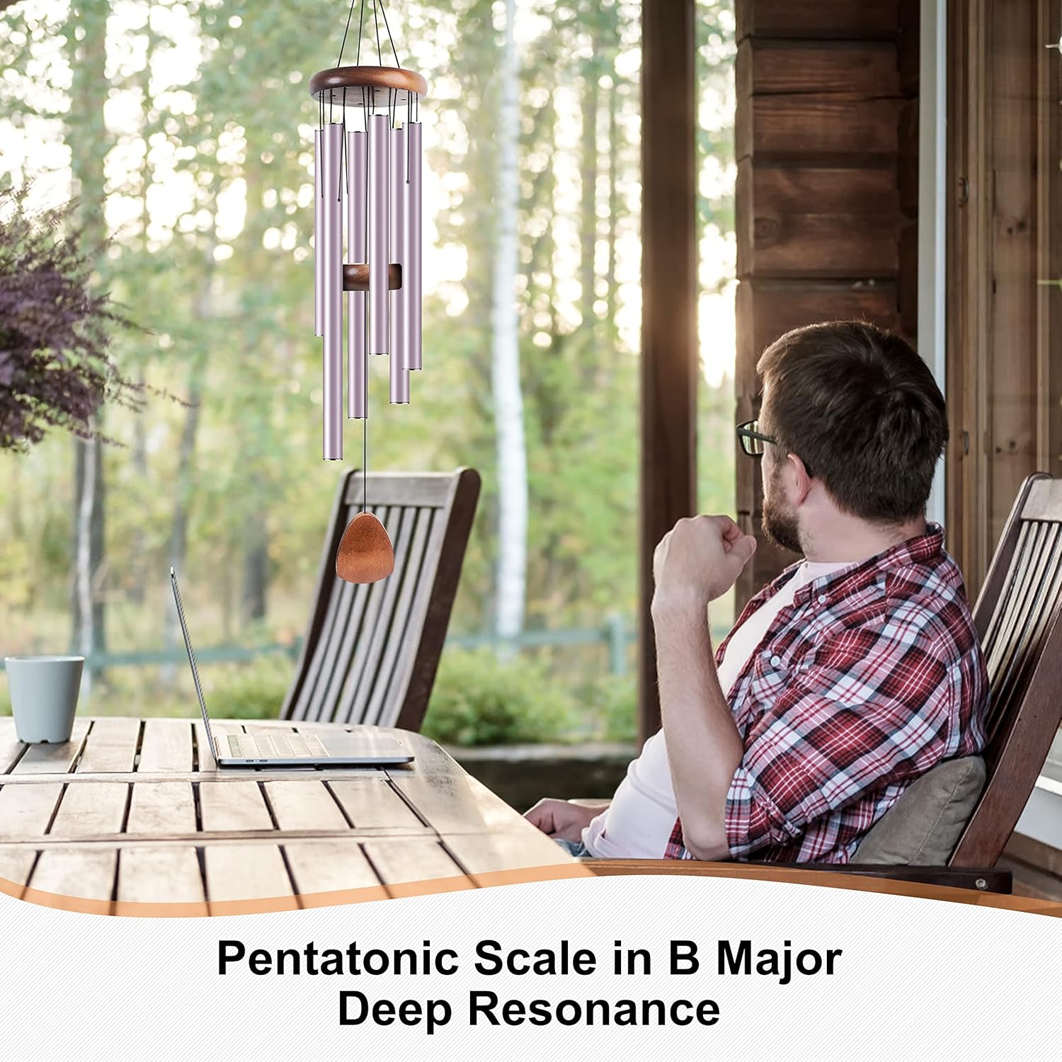 - ♪【Bigger and Better】The wind chime is made of aluminum pipe and pine. The total length of the wind chime from the top's S-shaped hook to the bottom's catcher is 37" Among them, six classic black anodized aluminum tubes have excellent corrosion resistance and wear resistance, and the length ranges from 8.7" to 12.6". The wood is made of wear-resistant and non-cracking pine. The adjustable wooden striker allows you to adjust your favorite position at will.