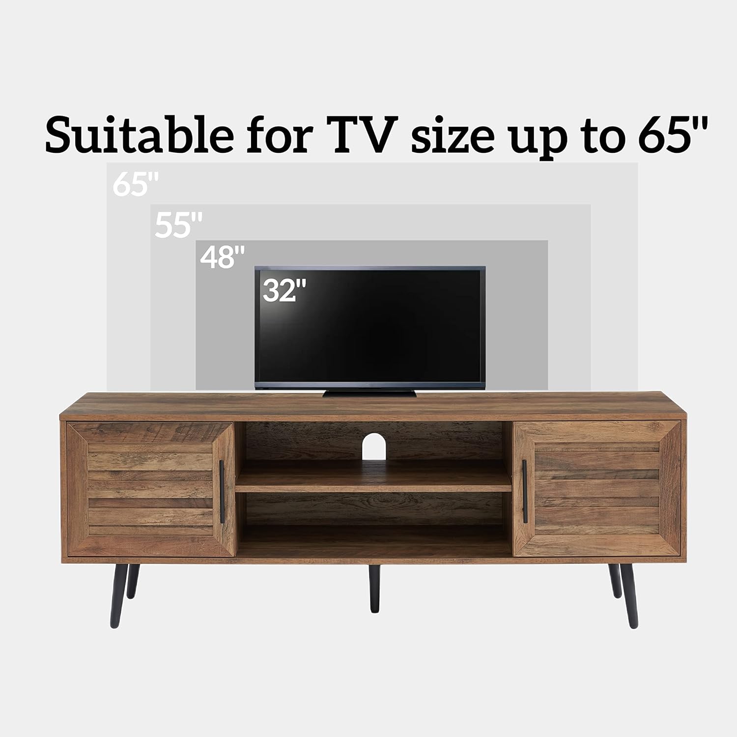Mid Century Wooden TV Stand Entertainment Console with Open Shelving and 2 Cabinets for Televisions up to 65 Inches(Rustic Oak)