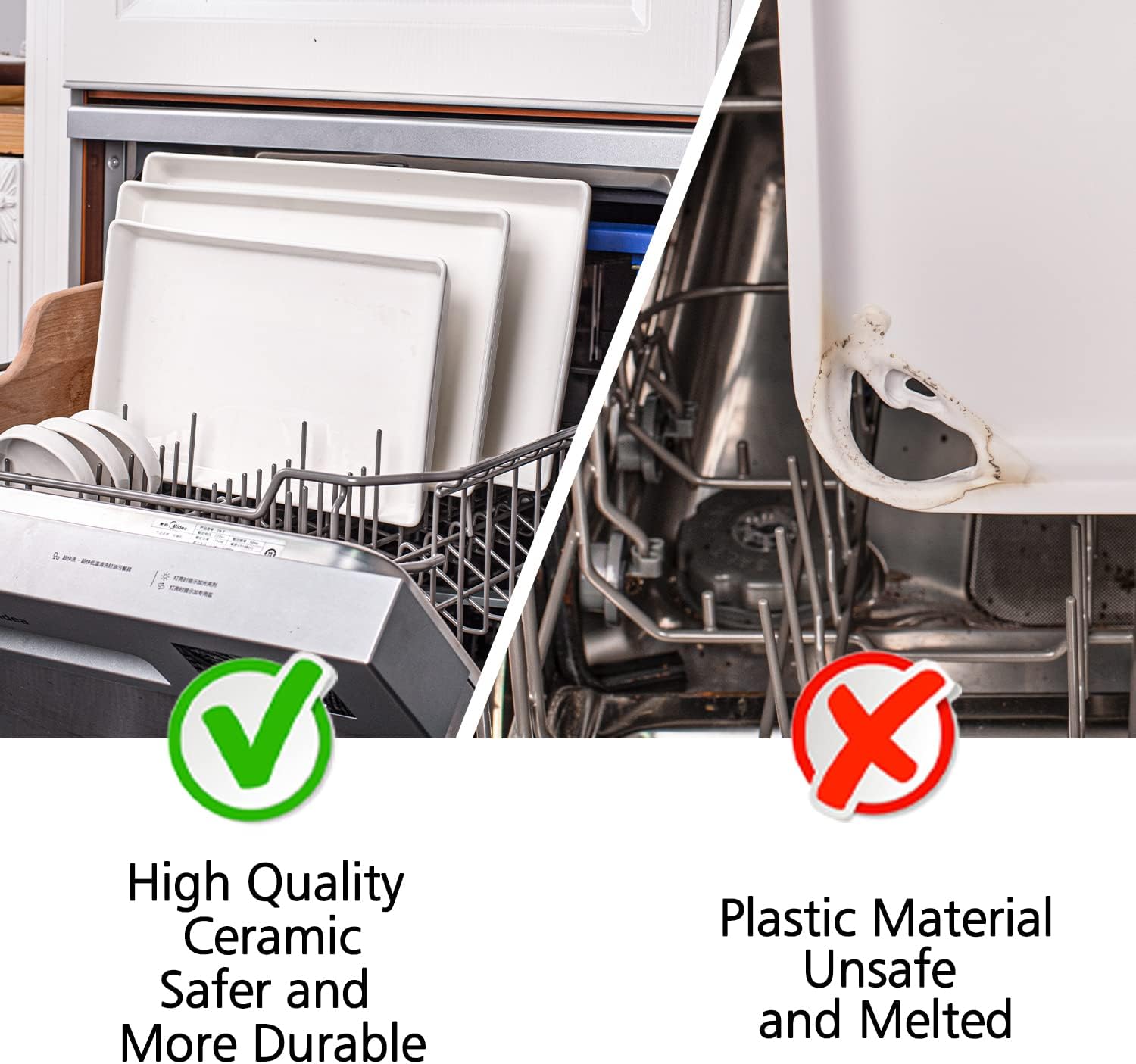 - Large Serving Platters Set: 16 x 9.5 x 1.5 inches, deeper design with more capacity for parties and entertaining. Made of high quality ceramic, more durable and safer than plastic trays. These serving plates will meet your daily use—— suit for serving cupcakes, snacks, turkey, dessert, sandwiches and chips/salad.