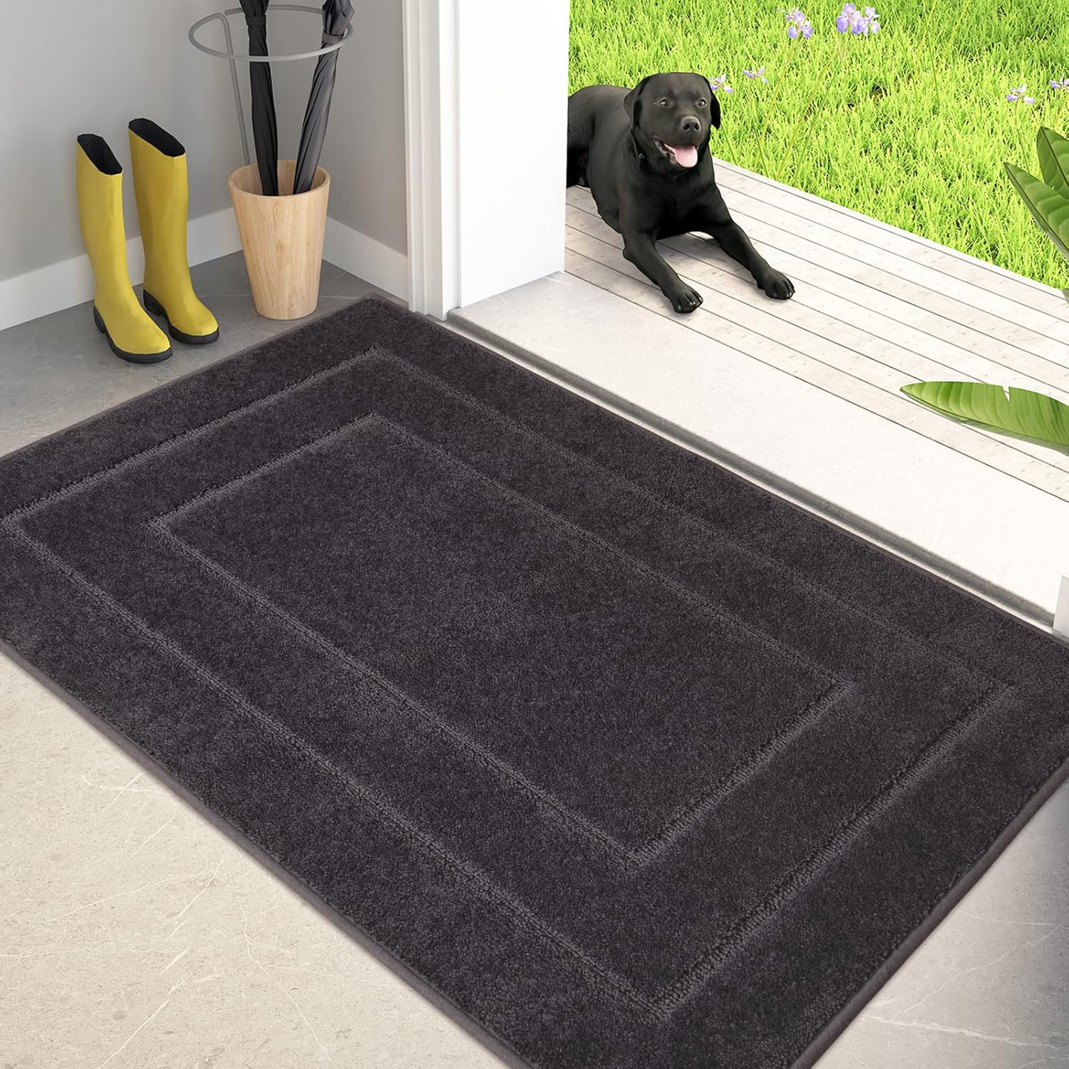PURRUGS Dirt Trapping Door Mat 34" x 59", Non-Slip/Skid Machine Washable Entryway Area Rug, Dog Doormat, Super Absorbent Welcome Mat for Muddy Wet Shoes and Paws, Charcoal