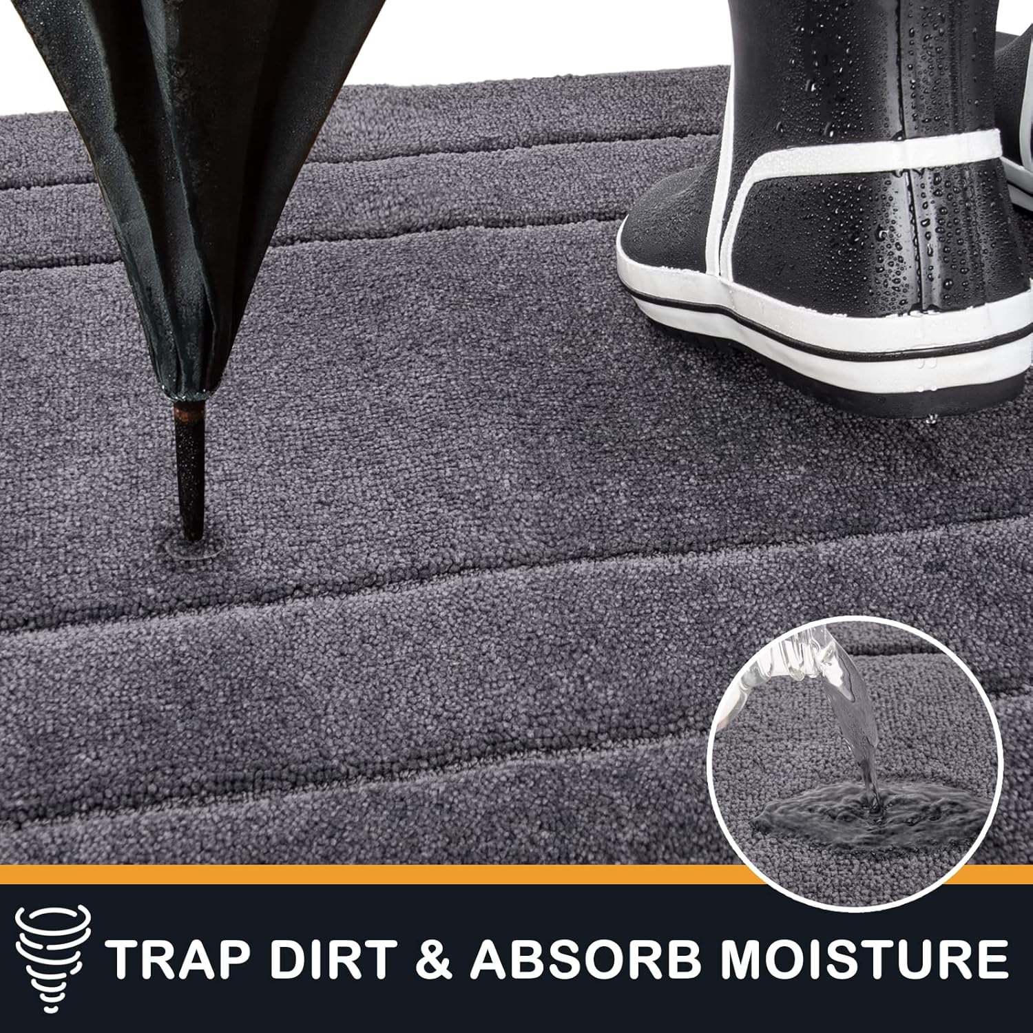 - TRAP DIRT & MOISTURE: Countless polyester fibers can effectively catch water and dirt off the bottom of shoes. Our dirt trapping doormat can keep indoor areas of your home or business clean, dry and safe, especially for the rainy, snowy, or muddy weather. For the best results, use the largest indoor door mats you have space for.