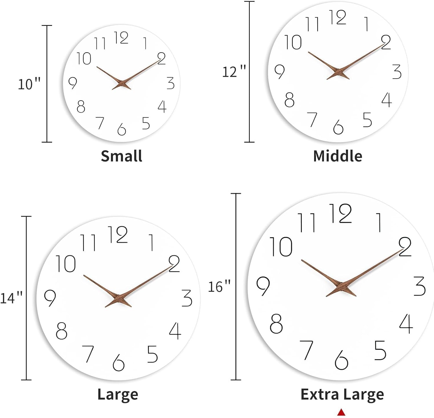 Mosewa Large Wall Clock Battery Operated 16 Inch White Silent Non Ticking Simple Minimalist Clock Decorative for Kitchen Home Bedroom Living Room Office