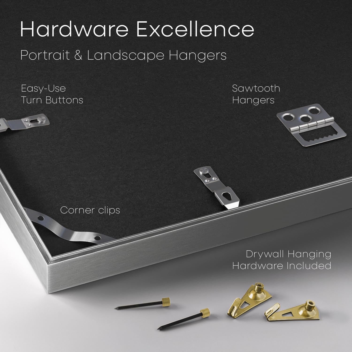 Homeforia 16x24 Silver Picture Frames, High End Metal 16x24 Poster Frame with Mat 12x18 in Photo, 16 x 24 Silver Frame Matted to 12 by 18 Print, 24x16 Hanging Frame, Tempered Glass, Wall Kit, Set of 1